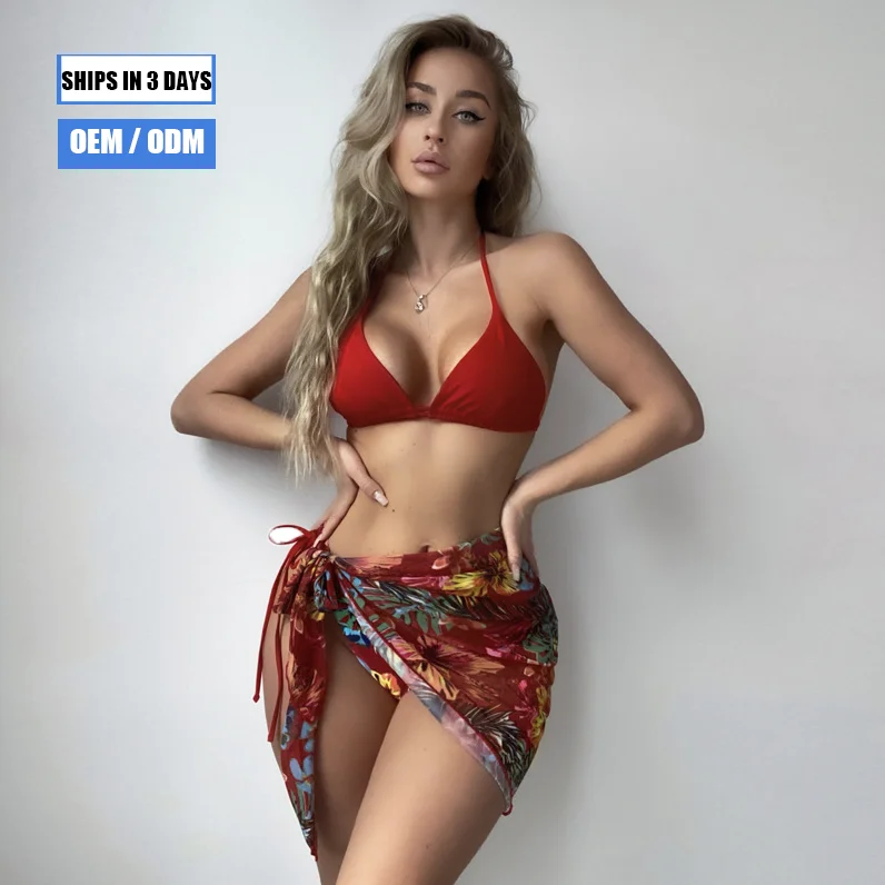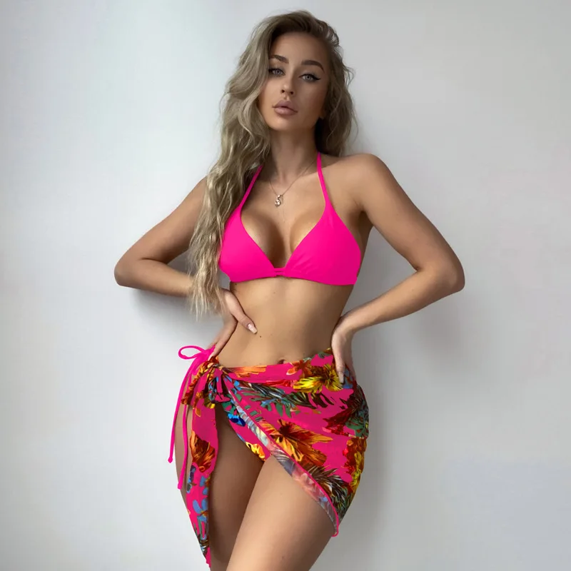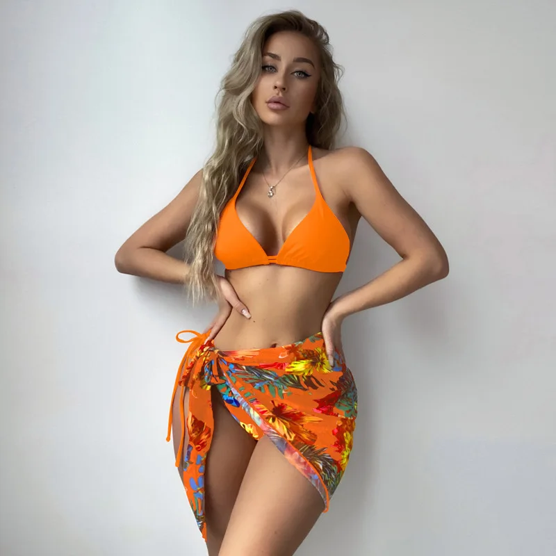 2026 Custom New Three-piece Bikini Swimsuit Conservative Sexy Swimsuit Printed Slimming Swimsuit Women