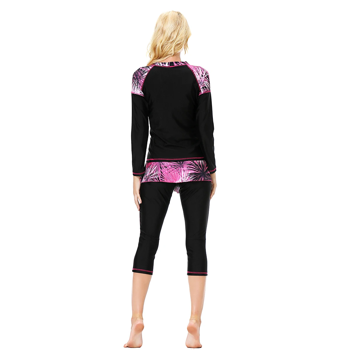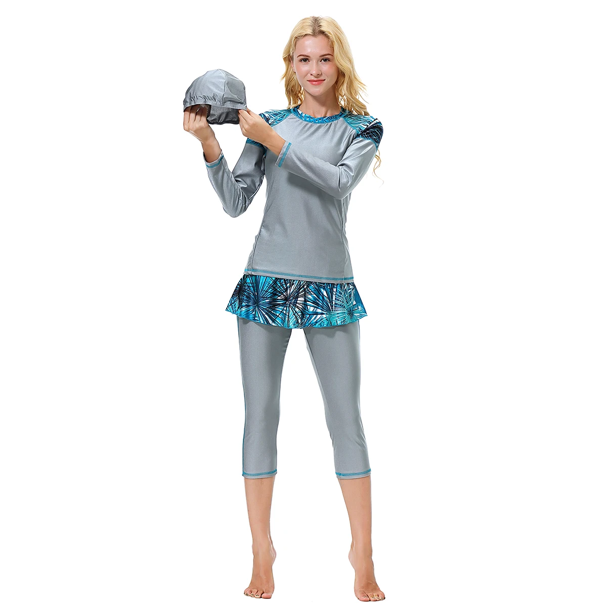Custom Hot Sale Women's Swimwear Conservative Burkinis Printed Medium Long Sleeve Capri Pants 3 Piece Set Muslim Anti-UV Front