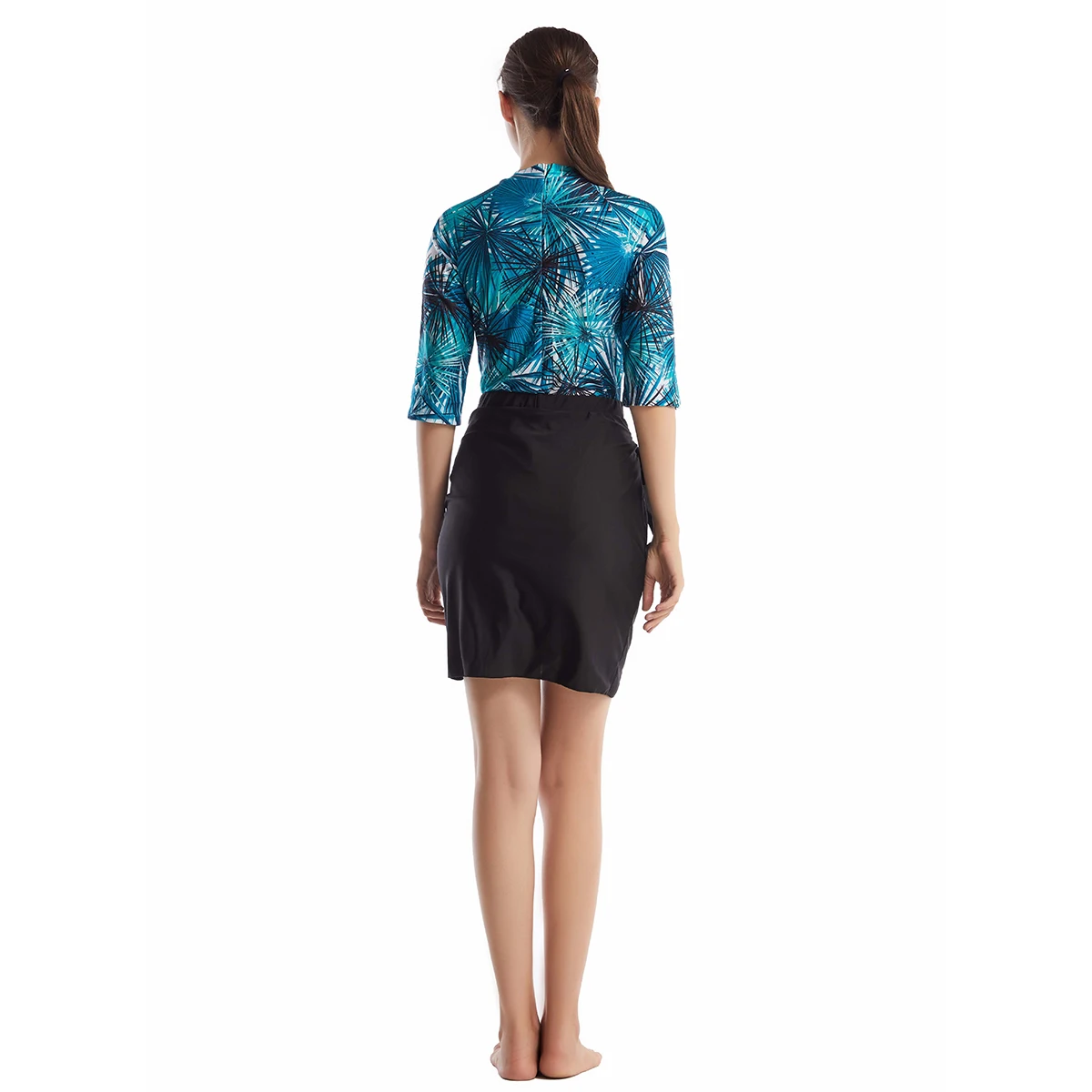 Custom Half-sleeved Round Neck Muslim Swimsuit Top Solid Color Short Skirt with Hood S-3XL Summer Women's Swimsuit