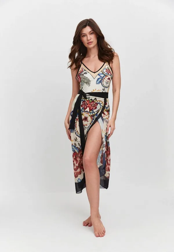 2026 New Women Handmade Front Logo Printed V-neck One-piece Flower Suspender High Waist Quick Dry Stretch Spandex/Polyester