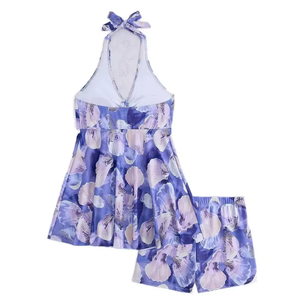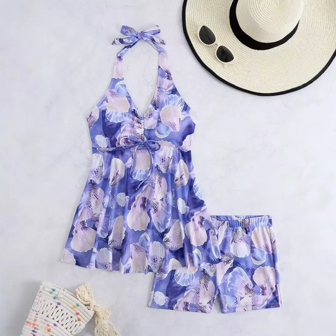 Custom Women Bandeau Two Piece Swimsuit High Waist V-neck Flower Tankinis Shorts Set Spandex/Polyester 2026 Luxury Designer