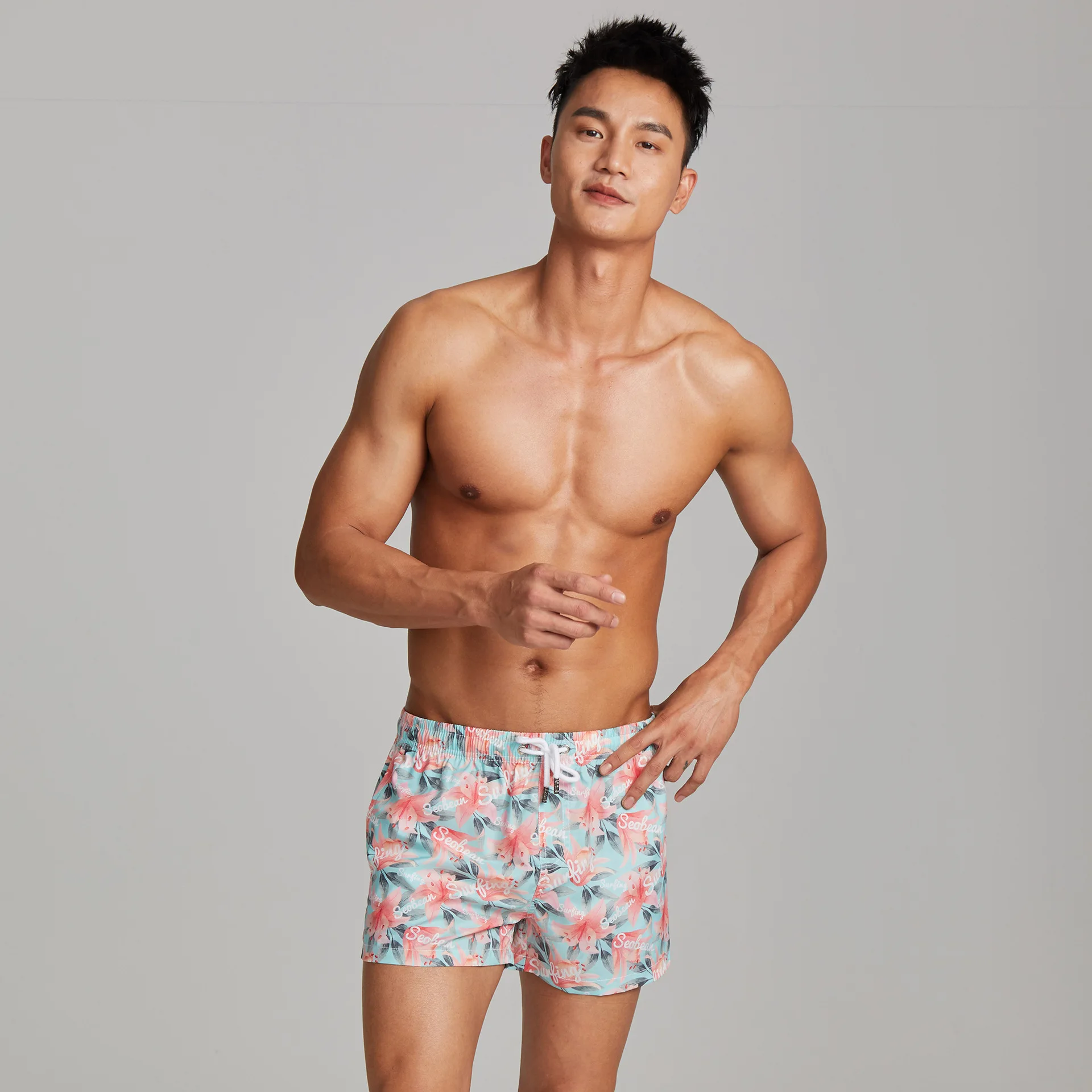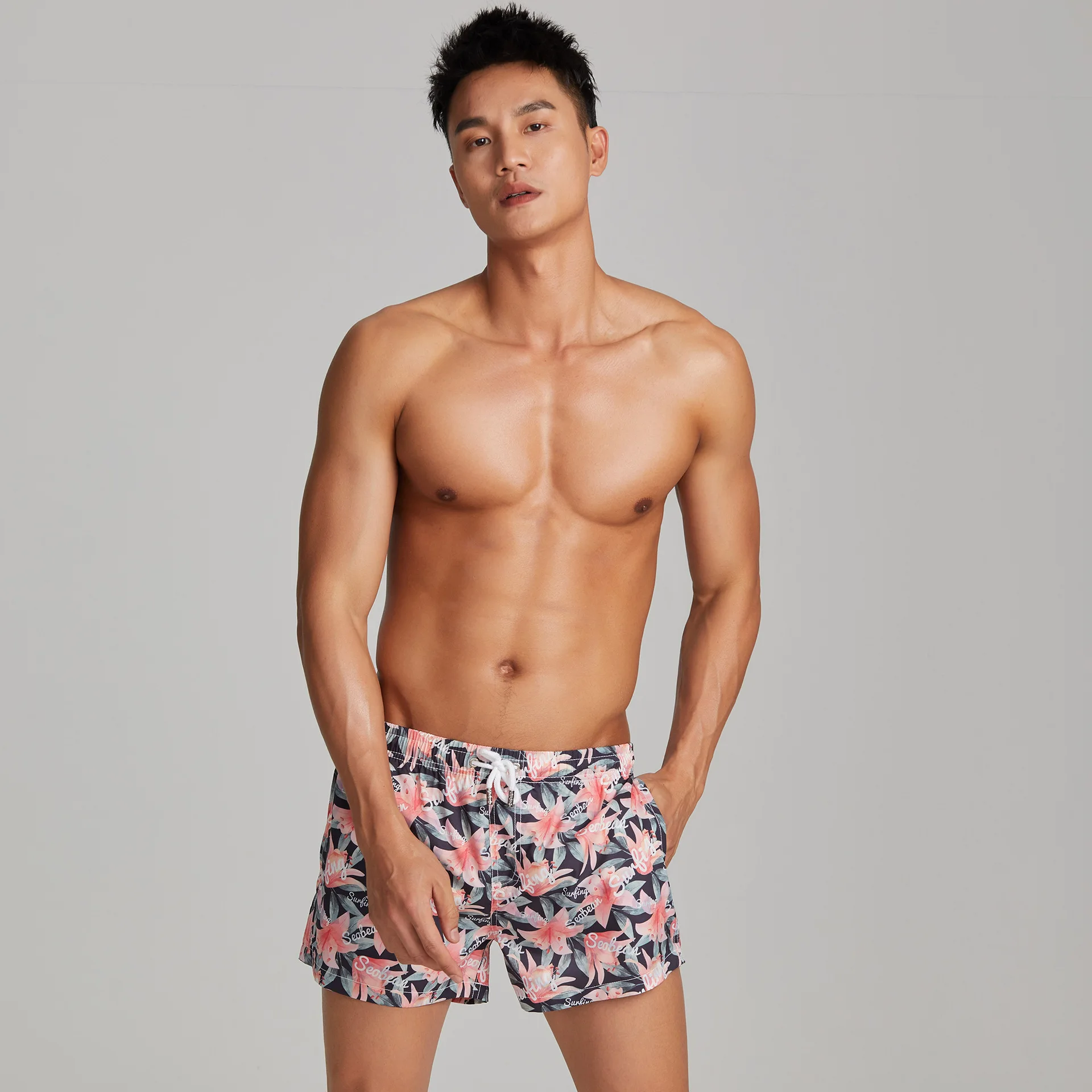 2026 Wholesale Summer Floral Print Men's Beach Surfing Shorts, Quick-drying Swimsuits, Men's Sportswear