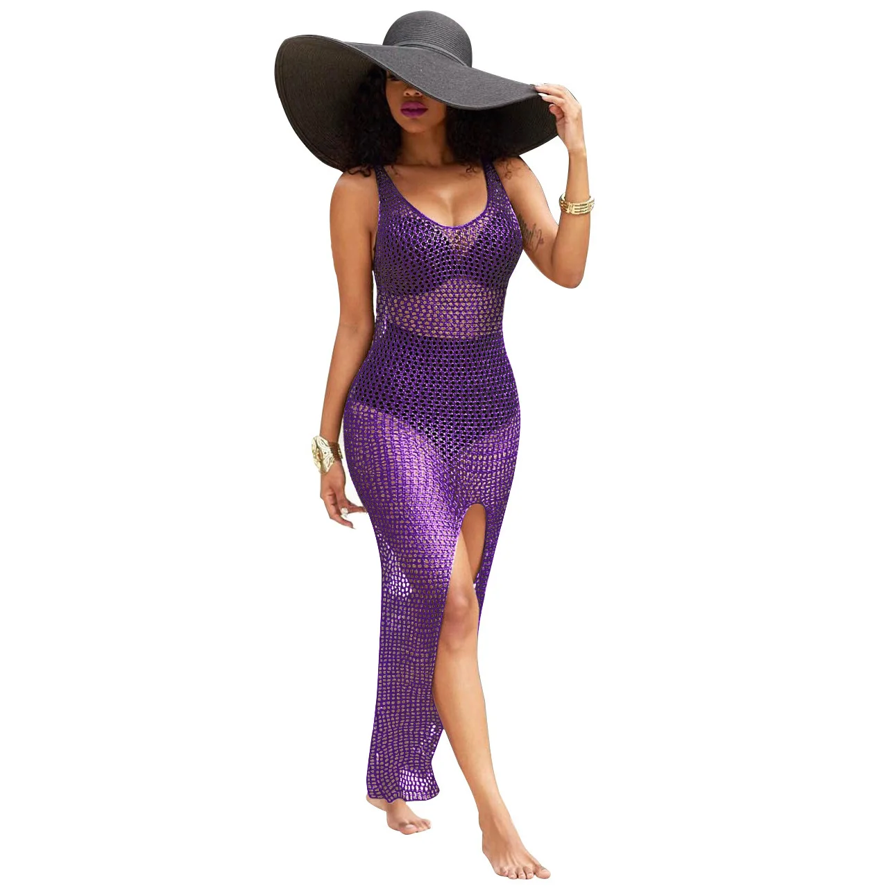 Women's Lace Beach Cover-Up Dress Sexy Crochet Summer Backless Bikini Swimsuit 1 Piece Women's Long Beachwear