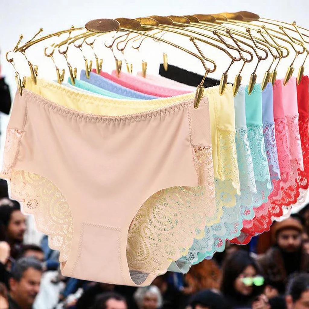 Free Size Solid Knitted Nylon Lace Hipster Mid-Rise Panties for Women Breathable Soft Everyday Wear Plain Dyed
