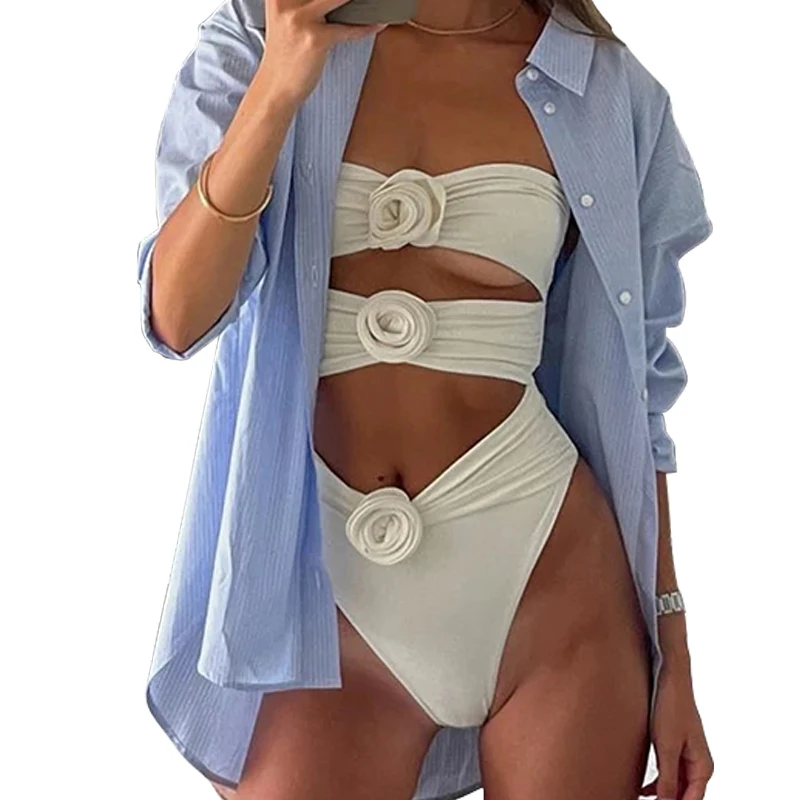 Rose Moulded Brazilian Bikini Women Sexy Bikini Swimwear Latest Style Beach Dress