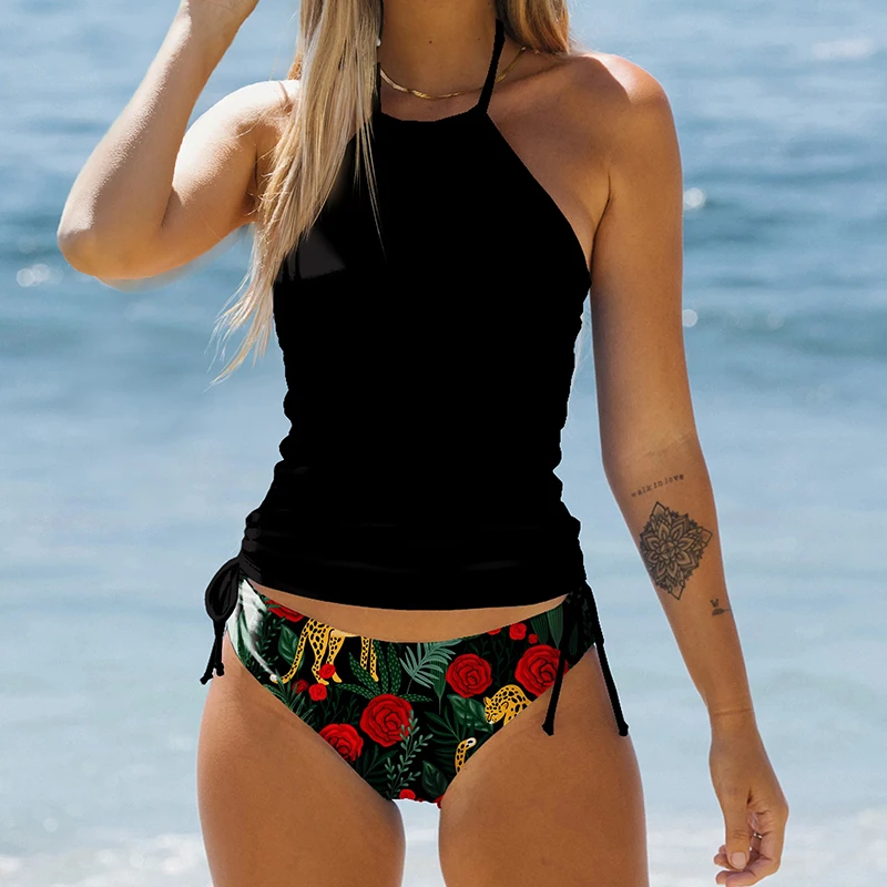 MLY Ruffle Bikini Summer Two Piece Suit Sexy Swimwear Bandage Biquini Triangle Swimsuit Printed Bathsuit