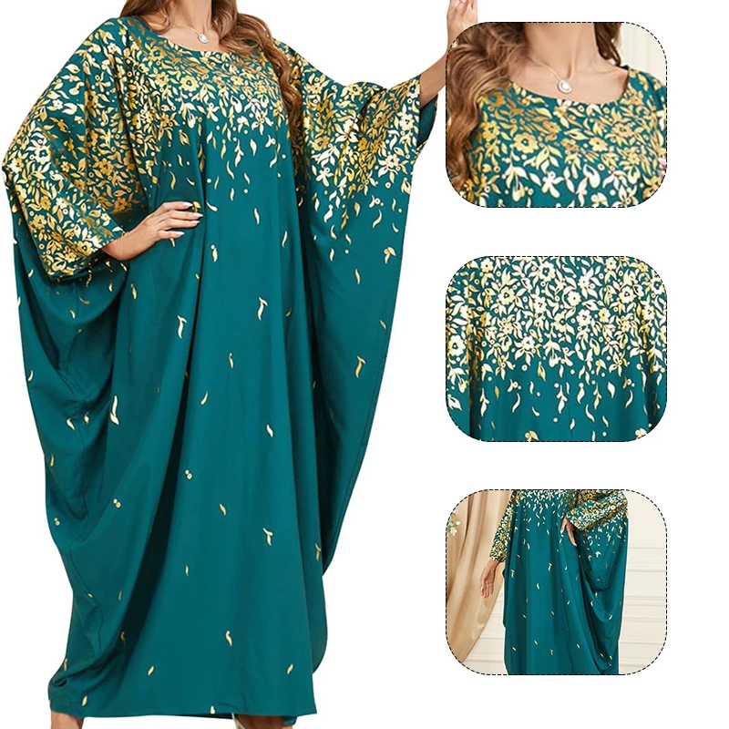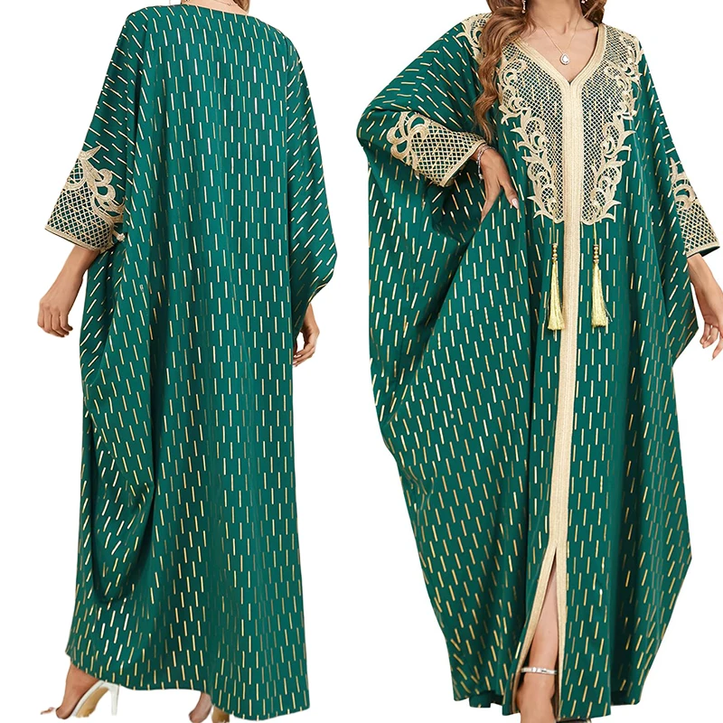 Exquisite Embroidery Plus Size Muslim Abaya Women's Ankle Length Dress Dubai Pendant Bat Sleeves Turkey Long Sleeves Caftan