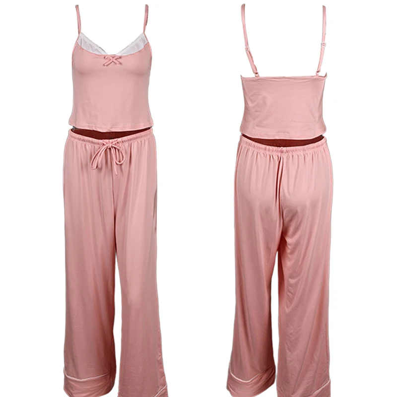 New Casual Comfortable Home Wear Pajamas Sets Suspenders Pants Waistband Drawstring Bow Pajamas Two Piece Set