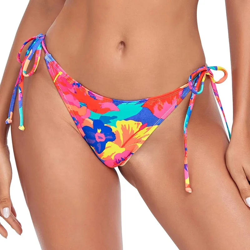 High Quality 100% Polyester Brilliant Color Printing Beach Thong Bikini Bottoms for Sexy Women with Front Logo