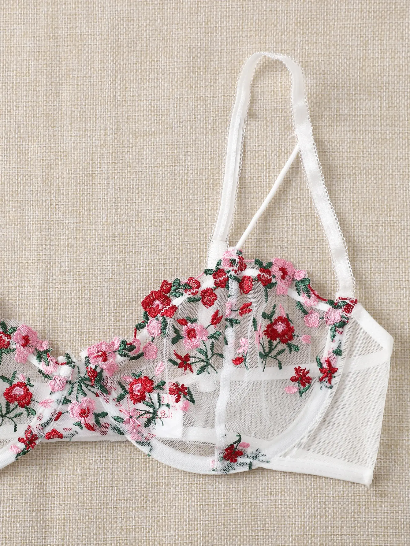 Fashion Sexy Ladies Underwear Bra Suit Embroidery Underwire Sheer Mesh Thong Lingerie Set
