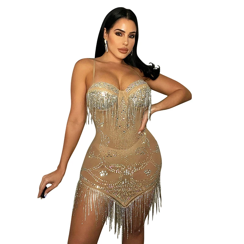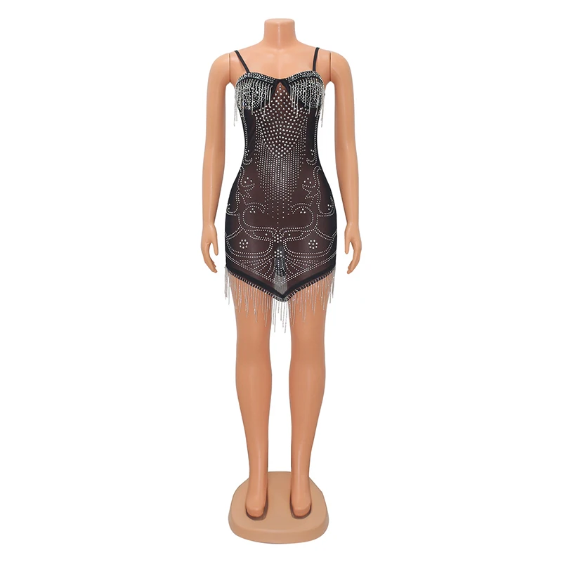 Ladies Luxury Casual Bling Sequin Empire Waist Knee-Length Satin Formal Rhinestone Prom Dress Black Sheer Party