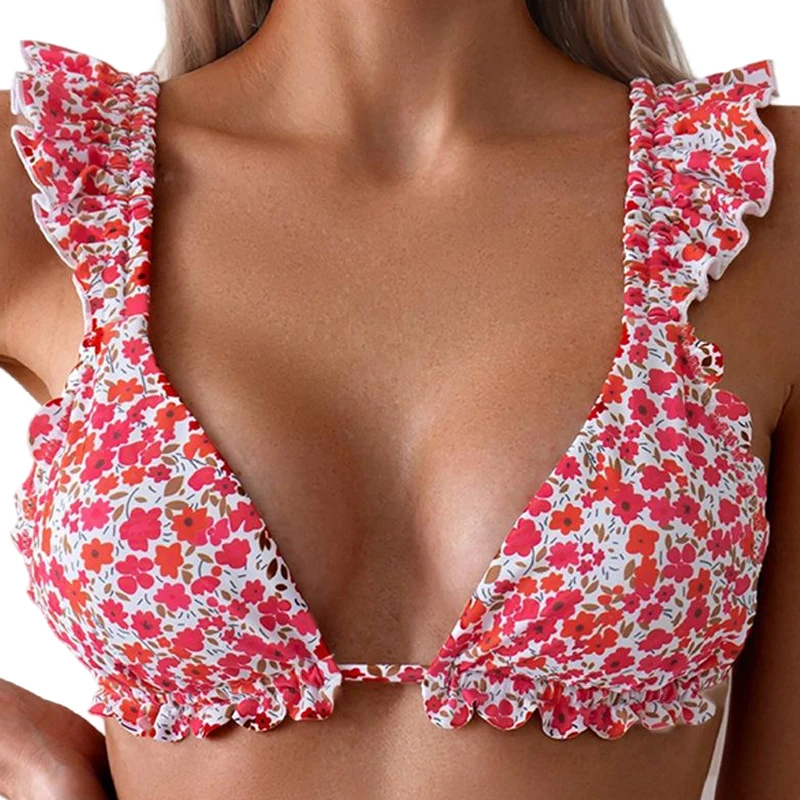 MLY Ruffle Bikini Summer Two Piece Suit Sexy Swimwear Bandage Biquini Triangle Swimsuit Printed Bathsuit