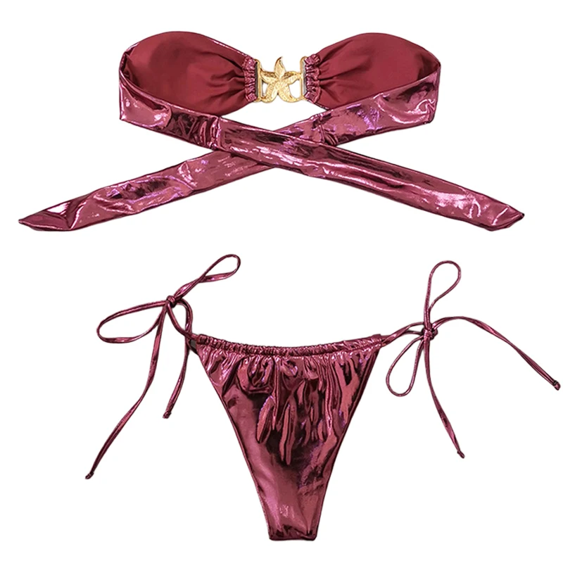 Hot Selling Sexy Strapless Swimsuit Women's Split Bikini 2-Piece Blue Glossy Gold Starfish Swimsuit Women