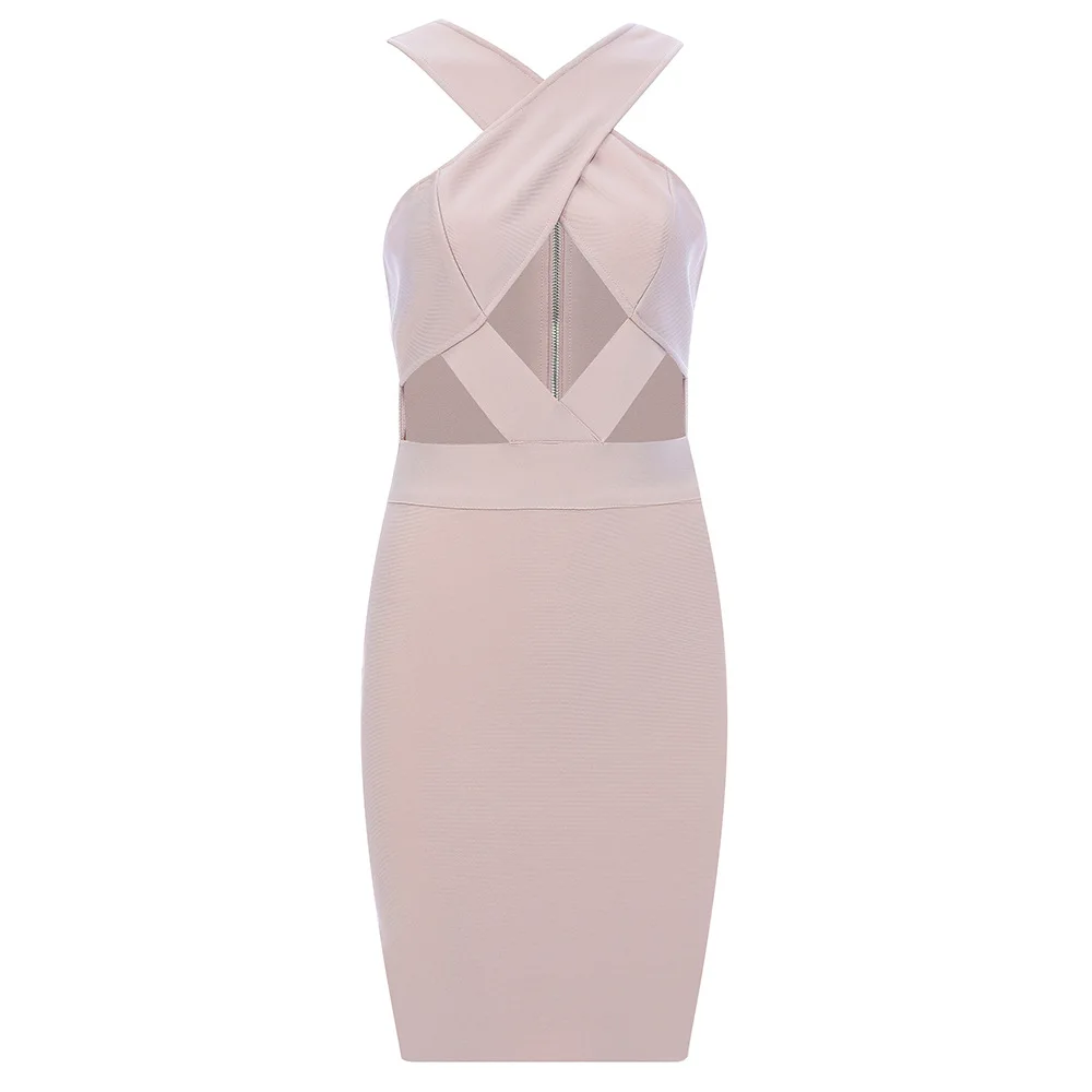 Summer New Sequined Polyester Cross Neck Open Back Cut Out Natural Waist Tight Elastic Halter Floor-Length Sexy Evening Dress