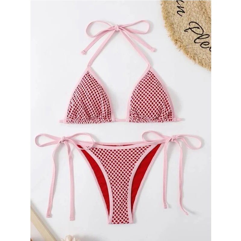Women High-Waist Plus Size Swimsuits for Girls Colour Triangle Swimming Suit Women Custom Sexy Bikini Set