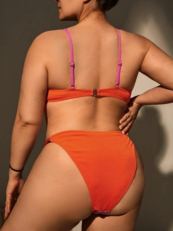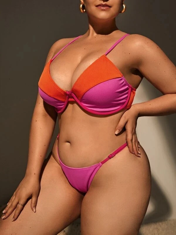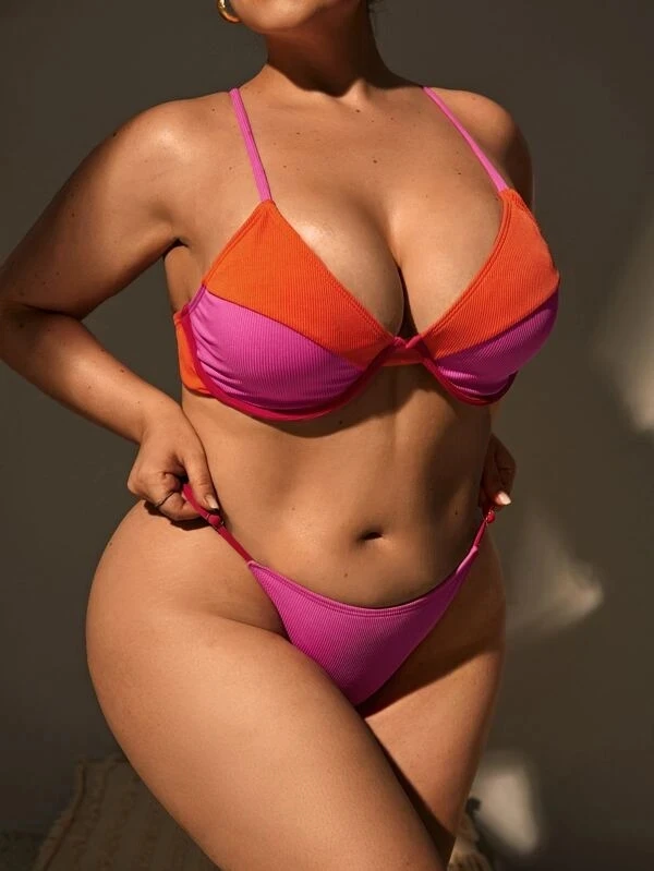 Wholesale Solid Breathable Two Piece Push up Plus Size Womens Swimsuit Bikini Swimwear