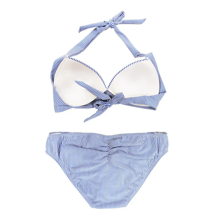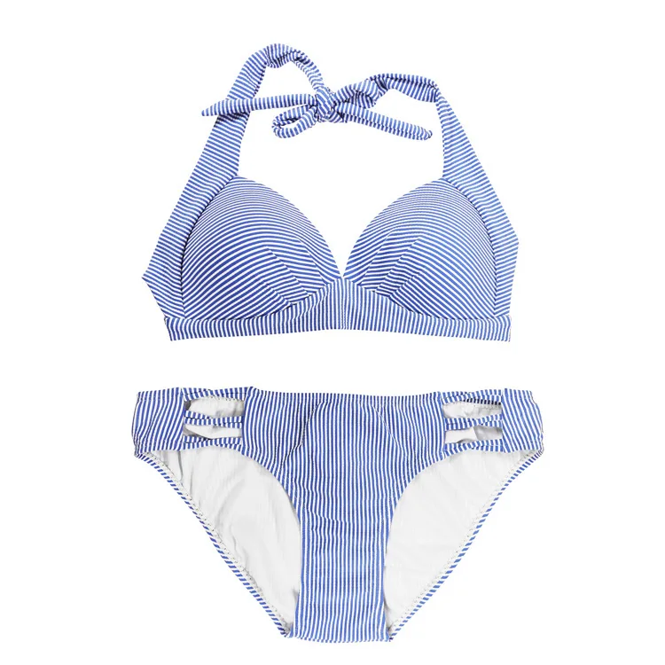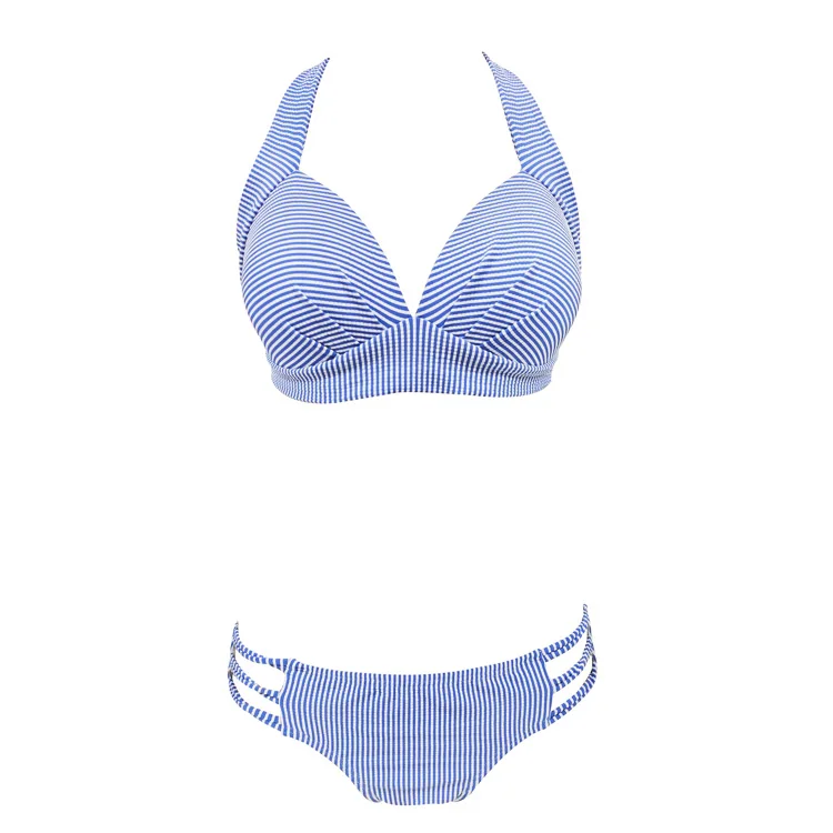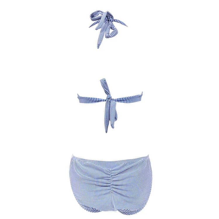 Sexy Halter Neck V-Top Front Print Quick Dry Swimwear Beachwear Low-Rise Bottoms Custom Stripes Bathing Suit Two Piece Women's