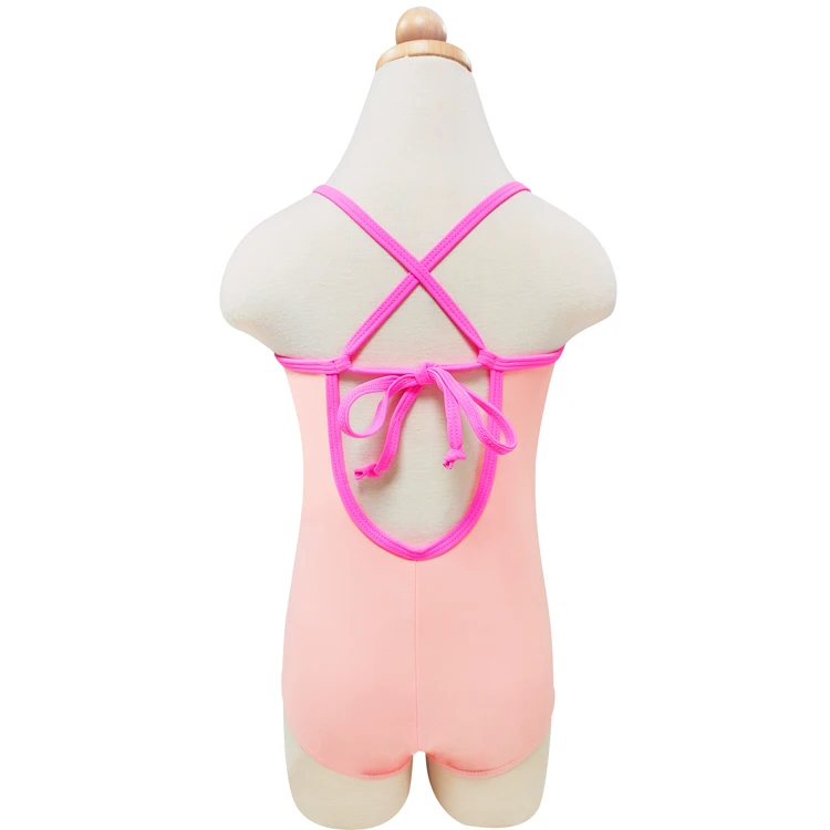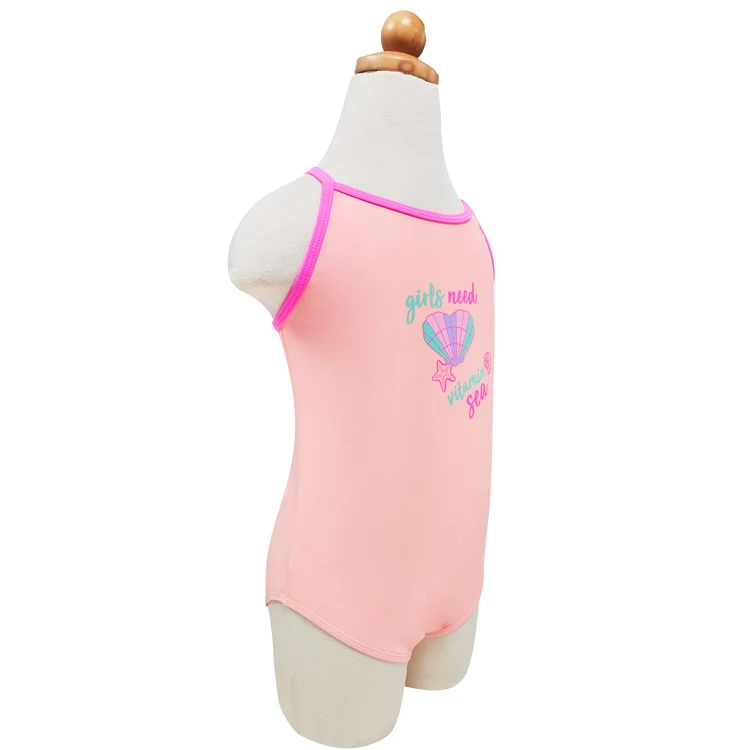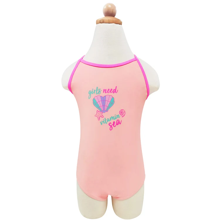 Wholesale One Piece Pink Ocean Shell Print Beachwear Swimsuit for Kids Cute Cross-Back Bow Swimwear Bathing Suit for Summer