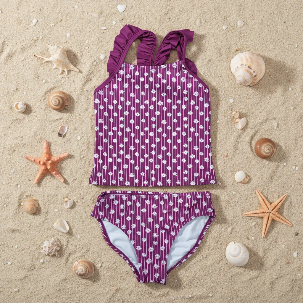 2026 Trending Ruffle Halter Front Print Quick-Dry Breathable Girls' Two-Piece & One-Piece Swimsuit for Beach & Pool Vacations