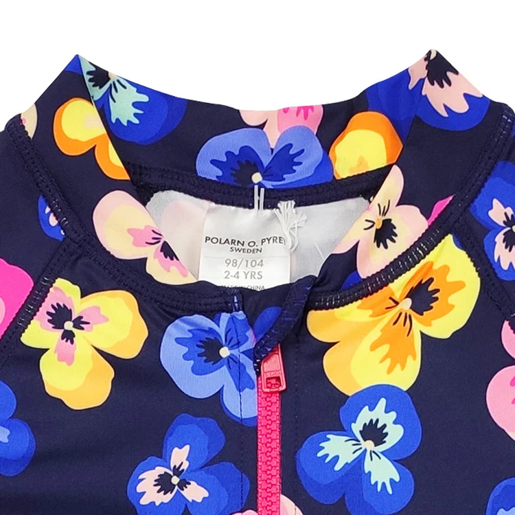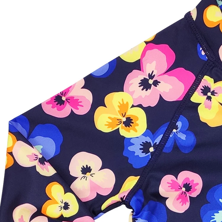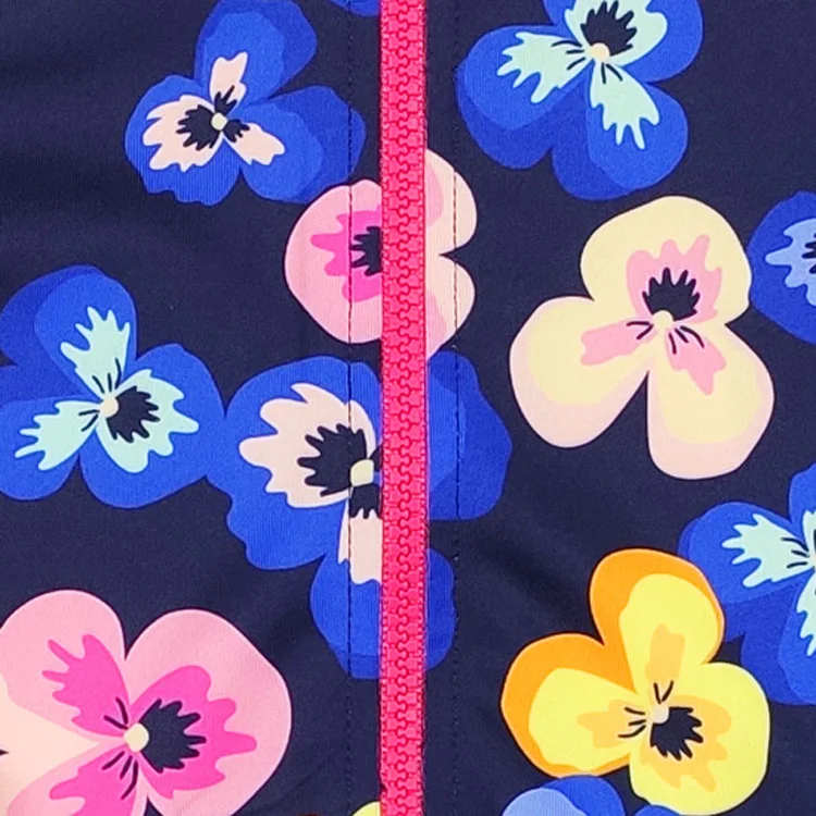Colorful Flower Pattern Beachwear Swimsuit for Girls Quick Dry One Piece Girls Swimwear with Front Zipper for Summer