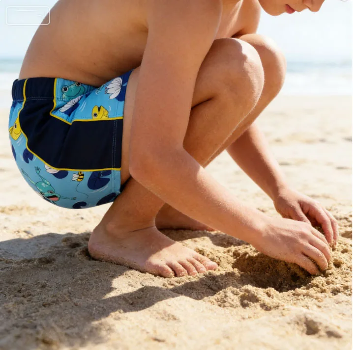 Cute Frog Print Swimwear Beachwear for Boys Quick Dry Boys' Swim Shorts with Cartoon Designs Beach Pool Swim Trunks