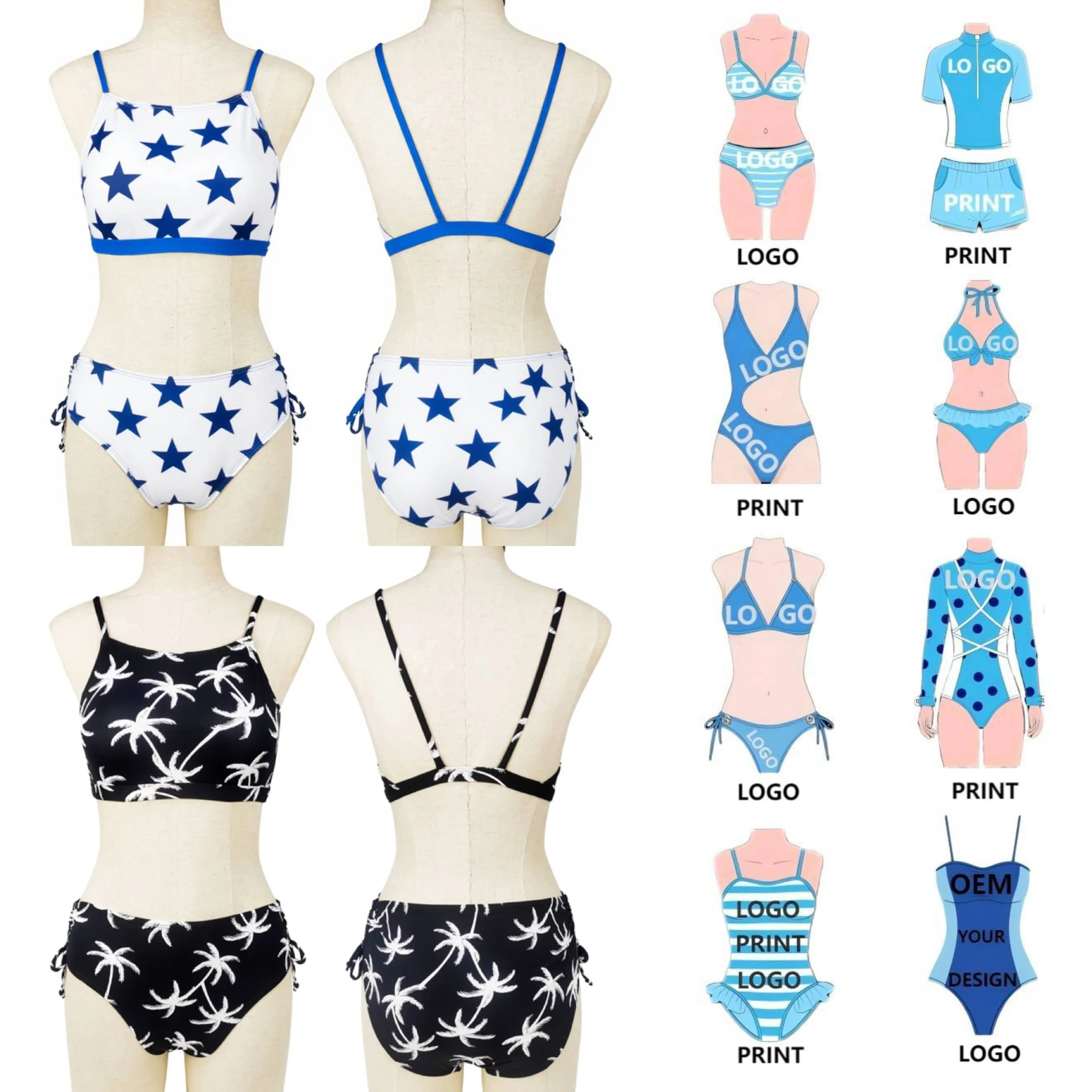 OEM Custom High Quality Women's Sexy Bikini Set Crop Top Star Print Multi Style Swimwear Beachwear High-Waisted Bottoms Swimsuit