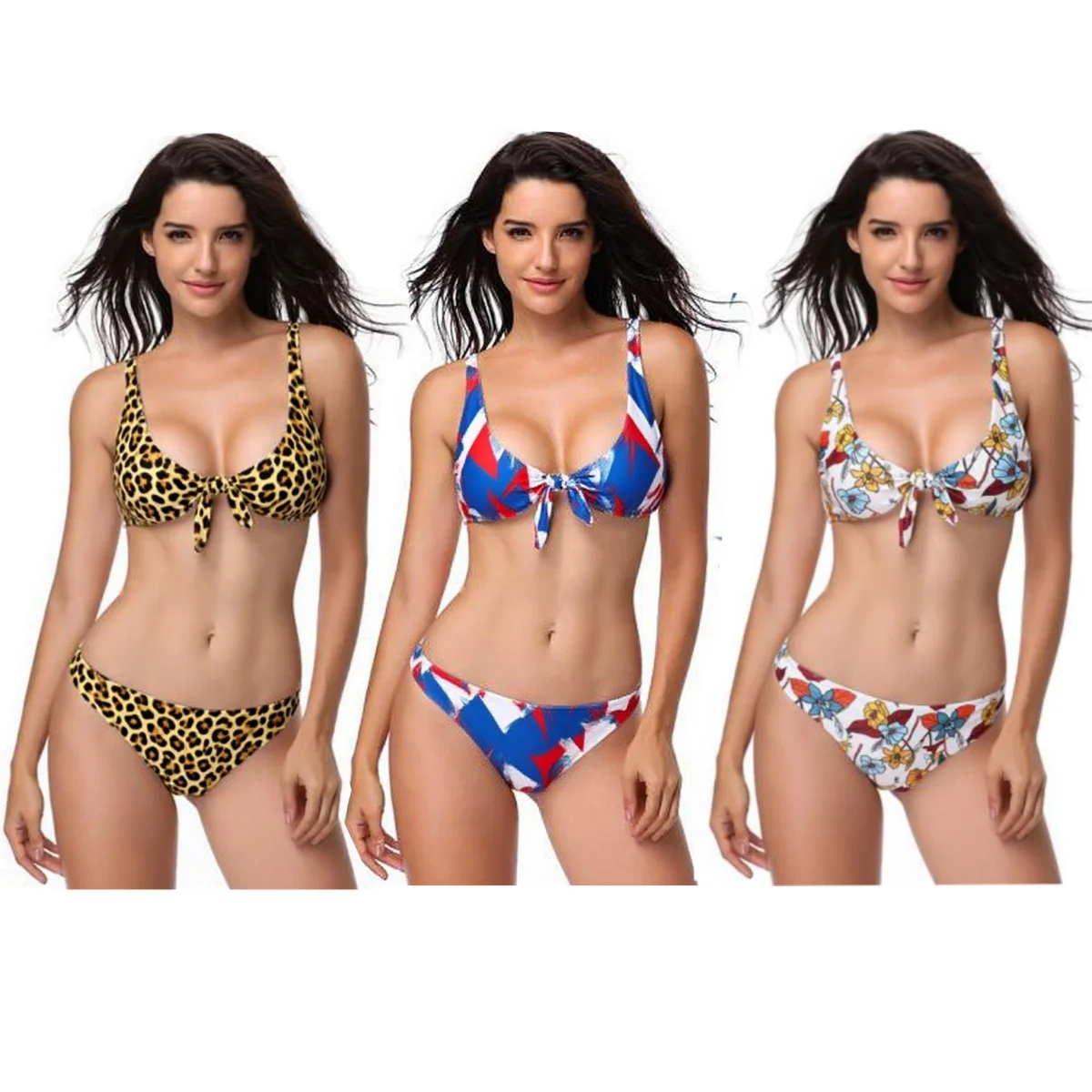 MLY Ruffle Bikini Summer Two Piece Suit Sexy Swimwear Bandage Biquini Triangle Swimsuit Printed Bathsuit