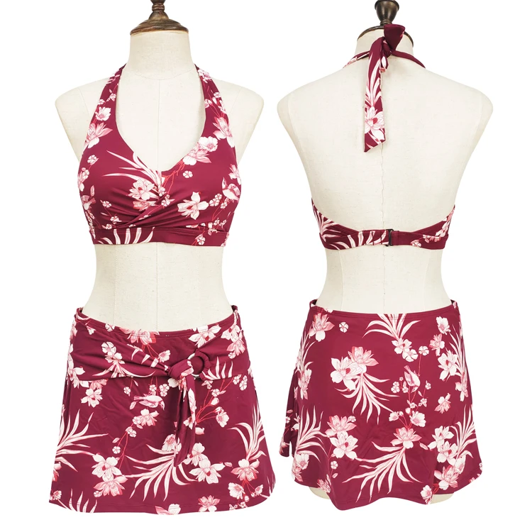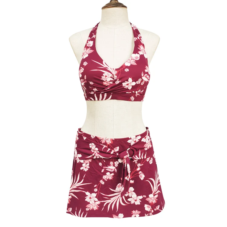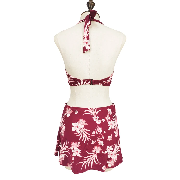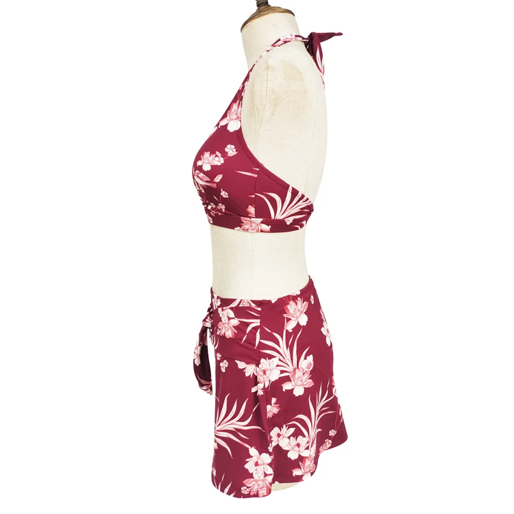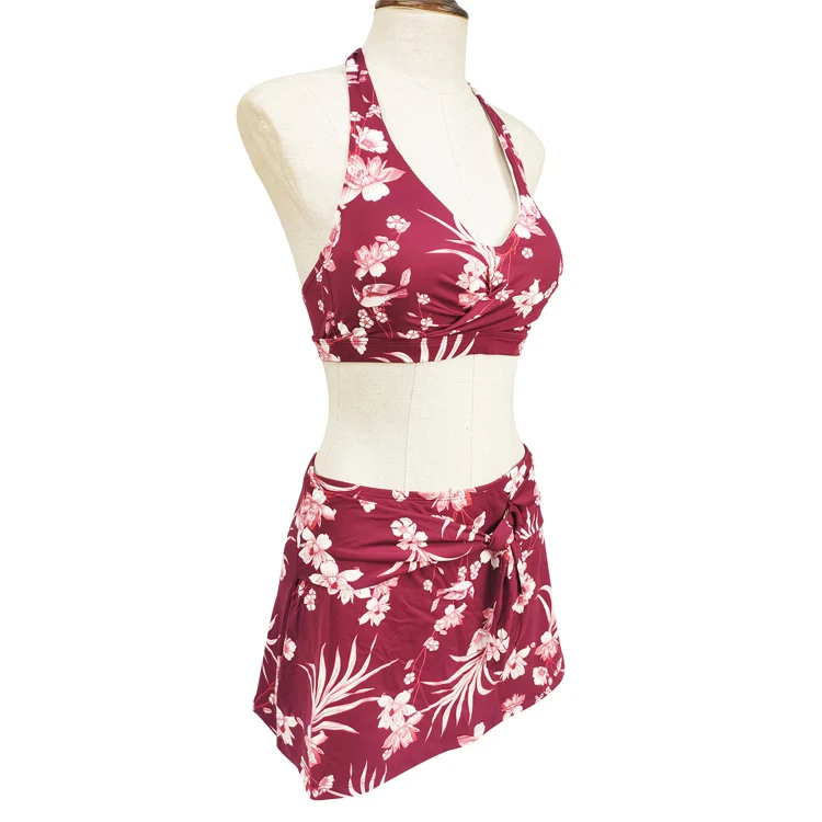 Custom Floral Designs Swimwear Beachwear for Ladies Sexy Women's Bikinis Set with Skirts Quick Dry Halter Neck Bathing Suit