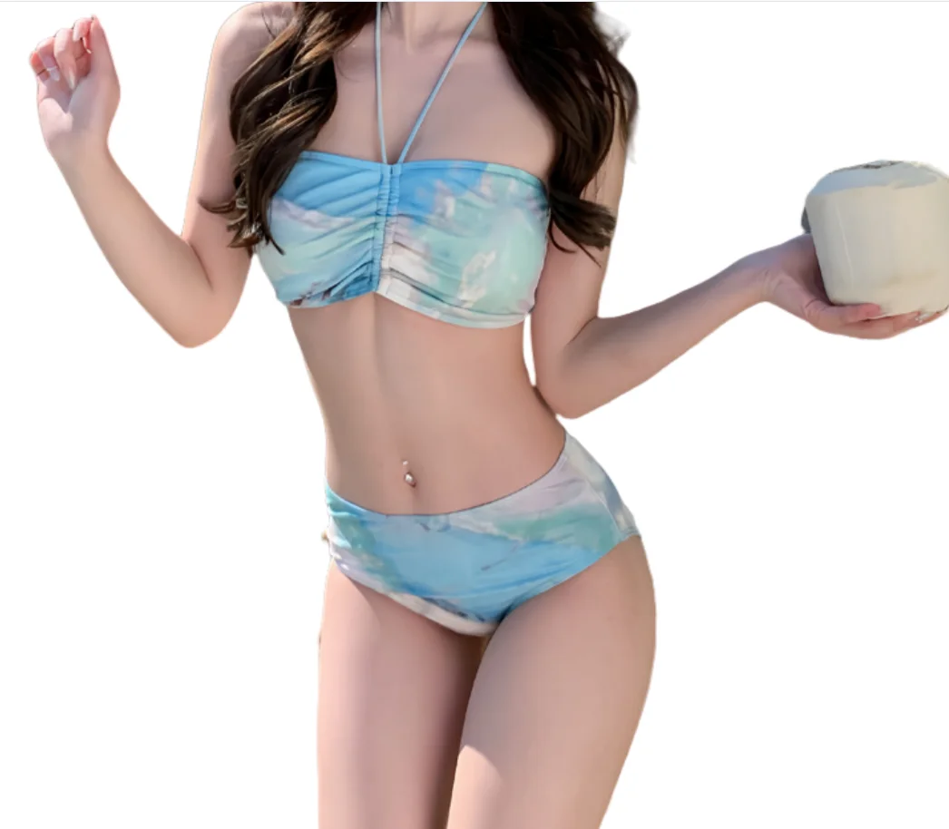 MLY Ruffle Bikini Summer Two Piece Suit Sexy Swimwear Bandage Biquini Triangle Swimsuit Printed Bathsuit