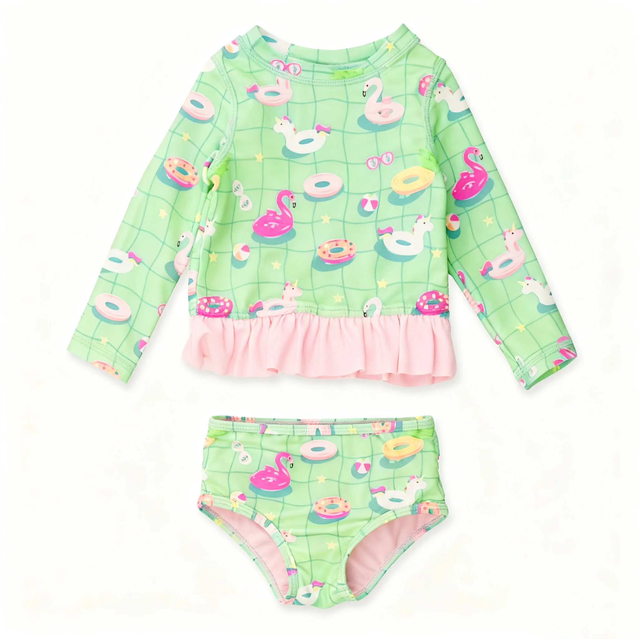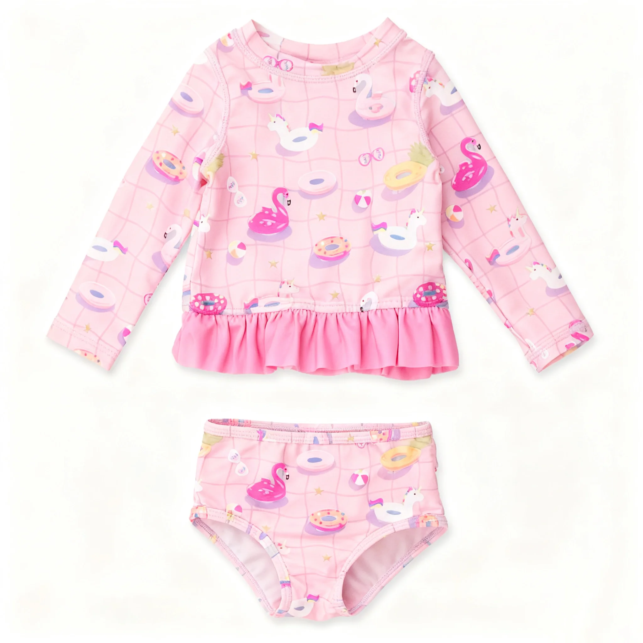 Custom Two-Piece Children's Girls Swimwear with UV Protection Spandex/Polyester Breathable & Eco-Friendly