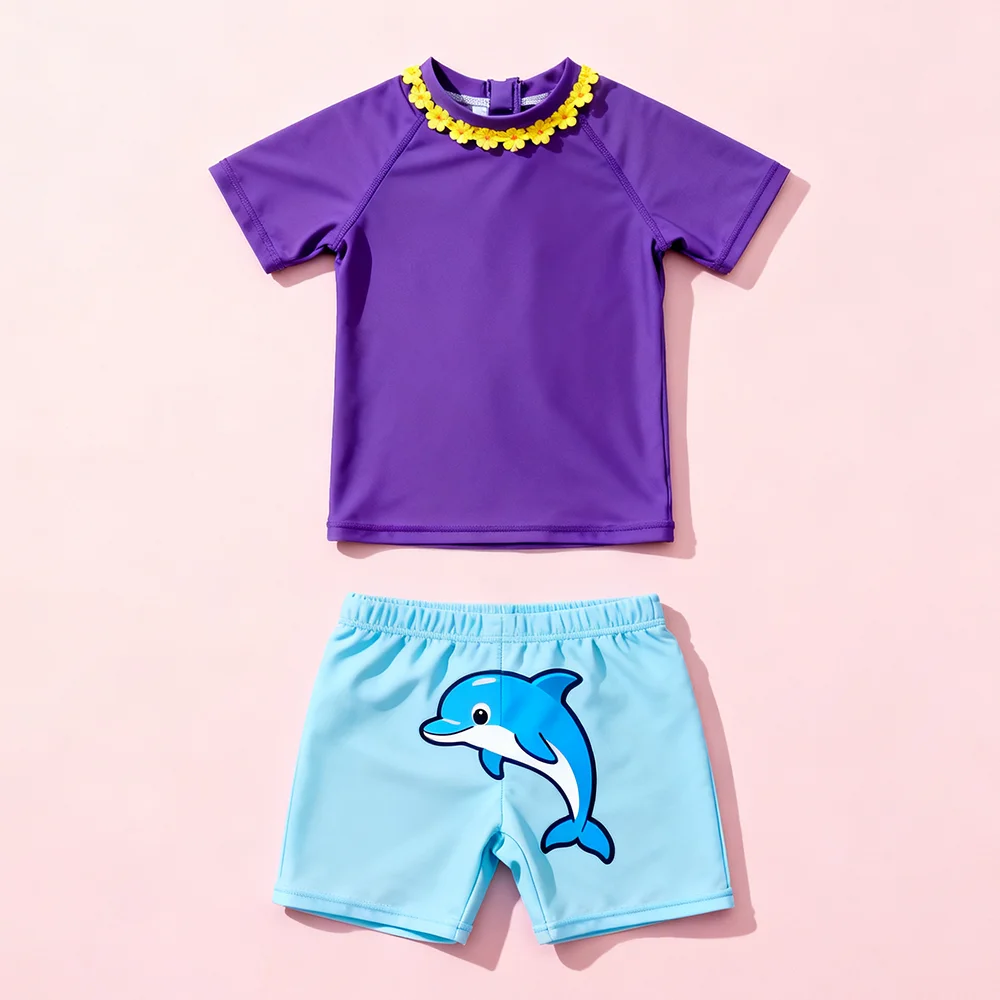 Oeko Tex Custom Boys Swimwear Set Kids Two-Piece Rash Guard and Shorts Short Sleeve UV Protection Swimsuit for Baby