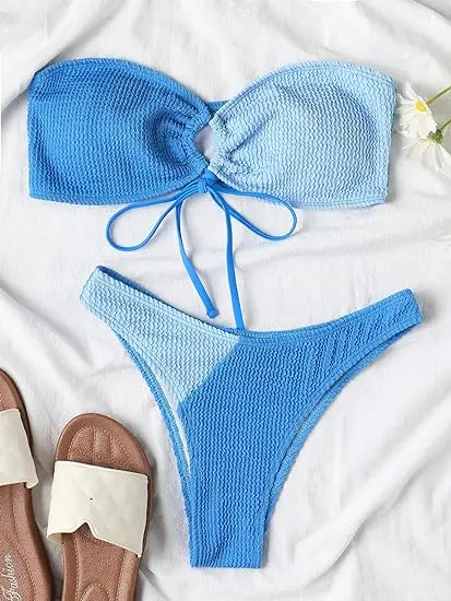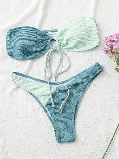 High Cut Bandeau Bikini Set Front Tie Women's Swimwear 2 Piece Bathing Suit Custom Two-color Swimsuit