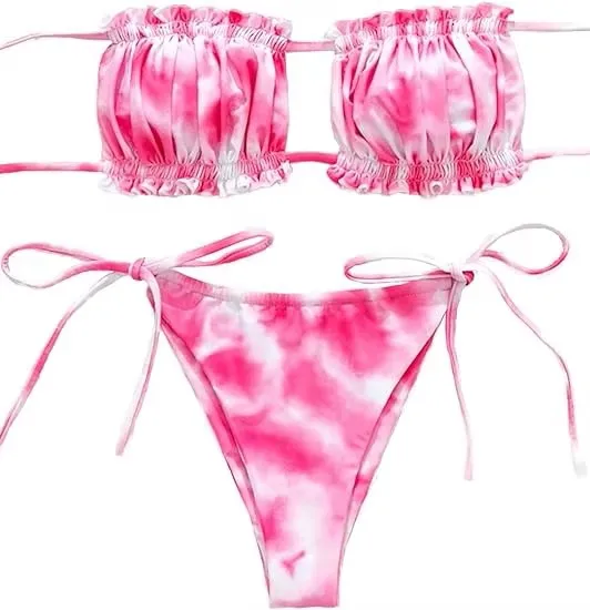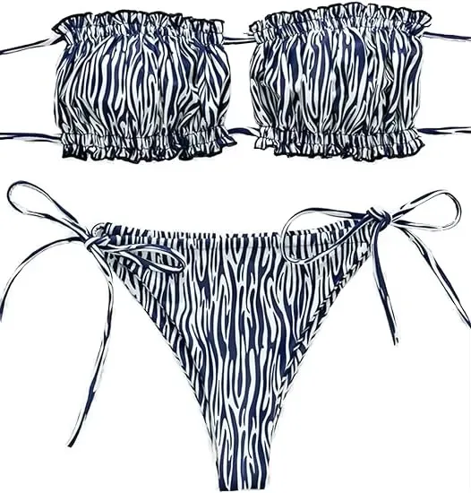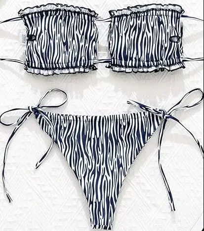 MLY Ruffle Bikini Summer Two Piece Suit Sexy Swimwear Bandage Biquini Triangle Swimsuit Printed Bathsuit