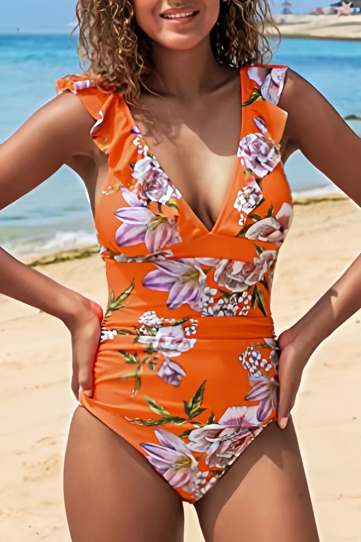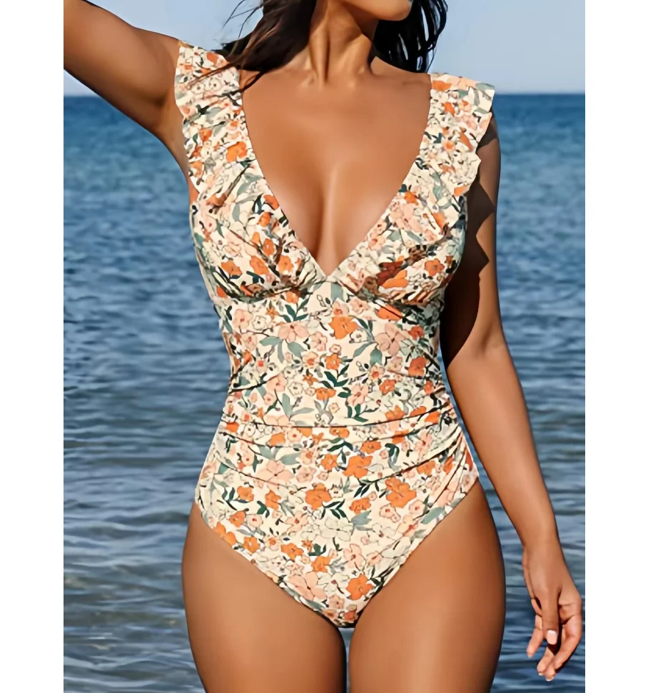 2026 Swimsuit Factory Custom One Piece Swimsuit High Waist Ruffled Floral Print Swimwear for Women 2026