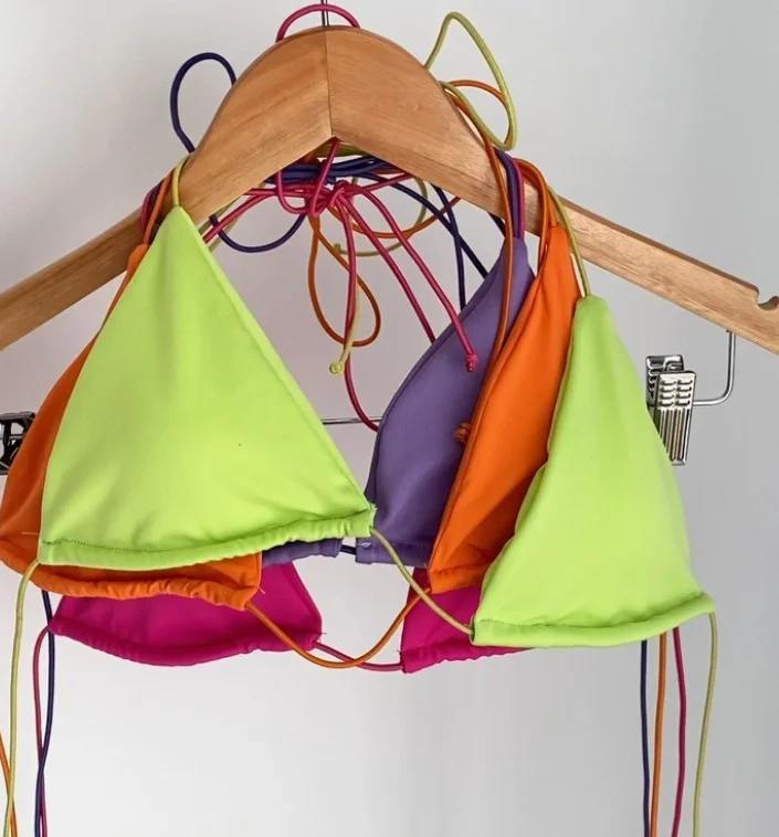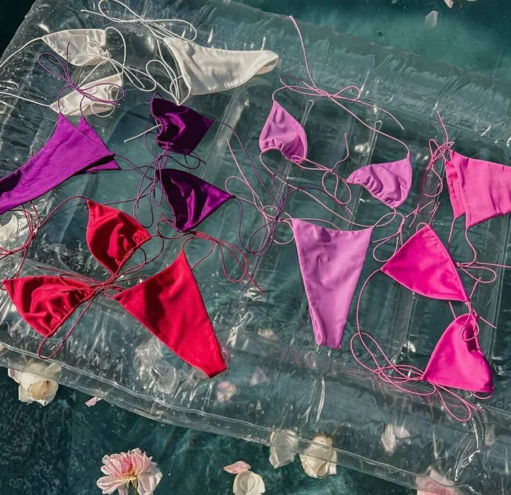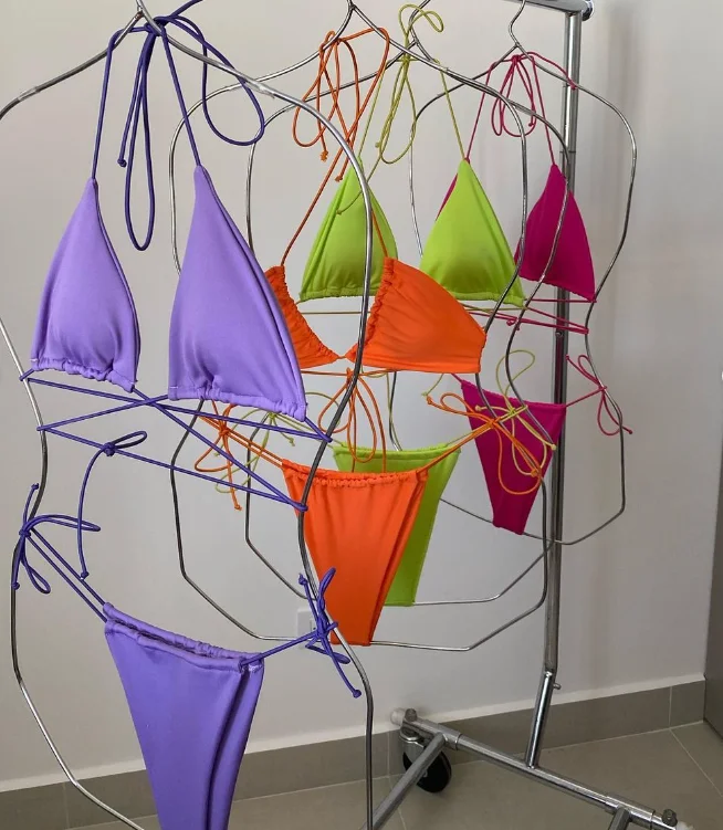2026 Manufacturer Custom Swimwear Women Lace Solid Blank Regular Fit Swimsuit Triangle V-Strings Micro Mini Sexy 2 Set Front