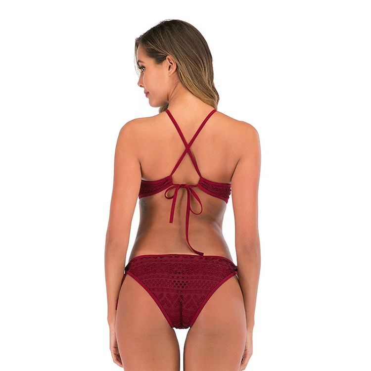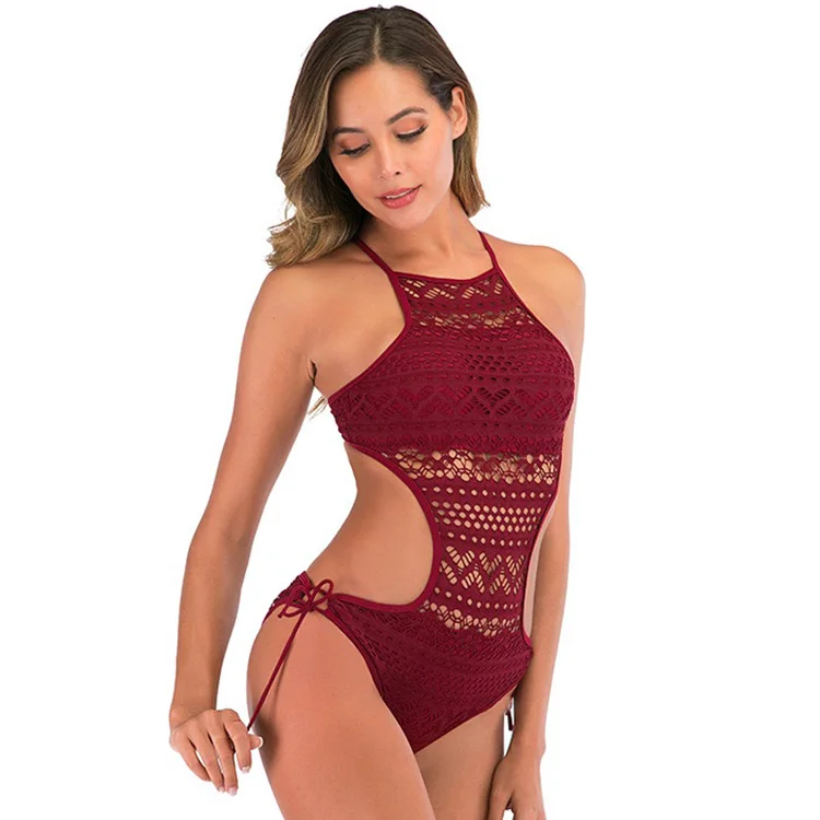 Mesh One-piece Swimsuit Crochet Bikini Halter Lacing Swimwear Solid Printed Bikini Hot Sale Sexy for Girls Women Adults Support