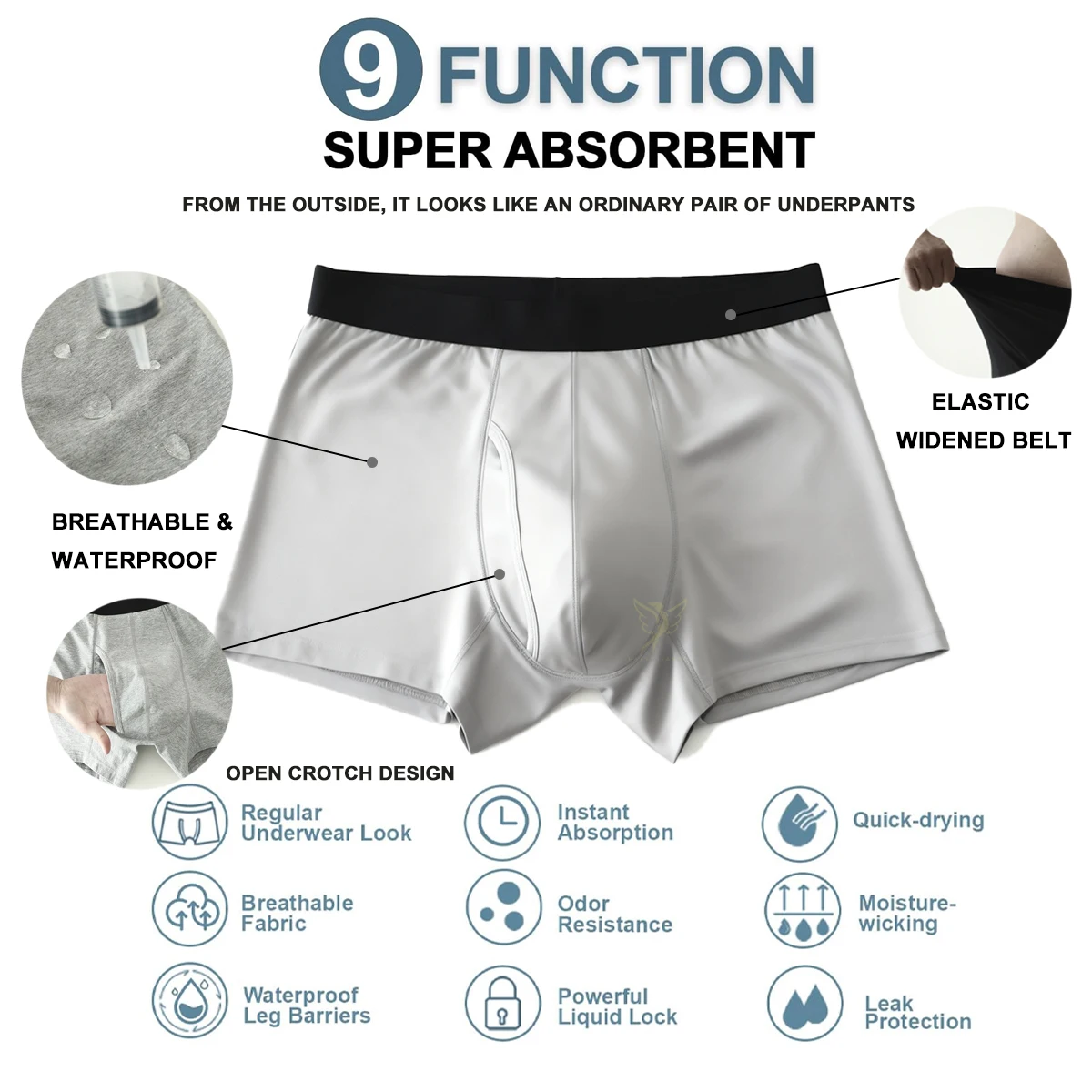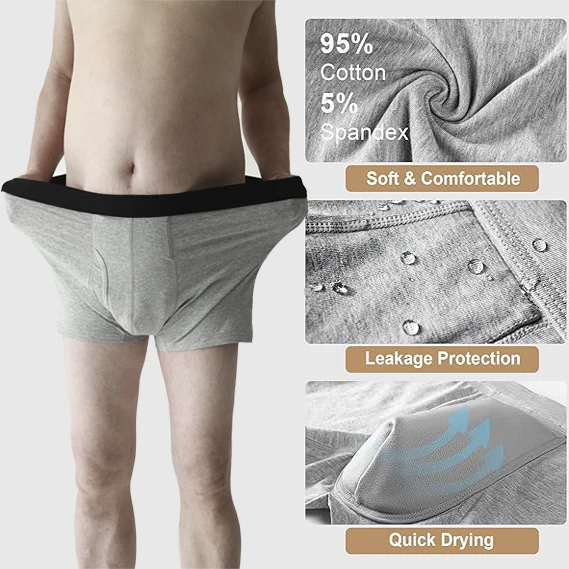 Hygieia Custom Male Absorb 120ML Heavy Incontinence Underwear Washable Post Surgery Leak Proof Incontinence Boxer Briefs for Men