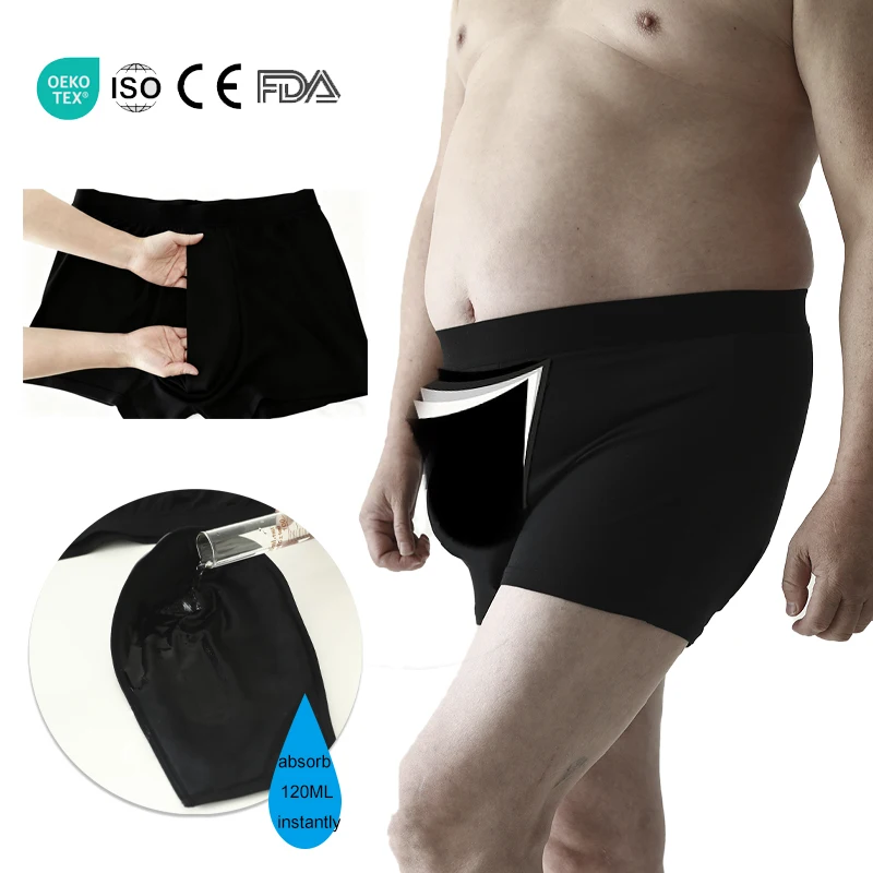 Hygieia Heavy Flow 120ml Absorbent Prostate Incontinence Pads Boxer Washable Post Surgery Leak-proof Incontinence Underwear Men