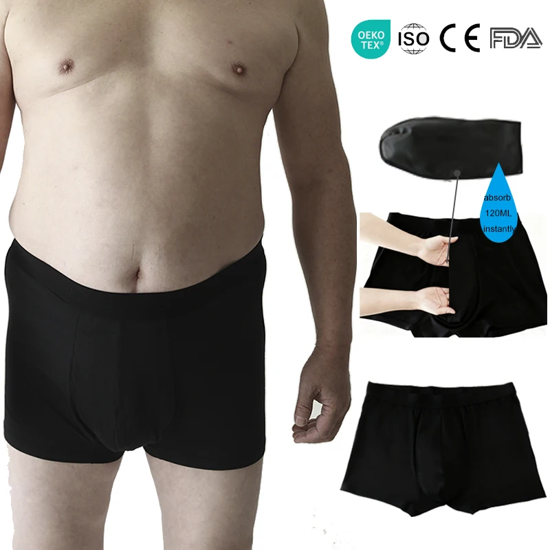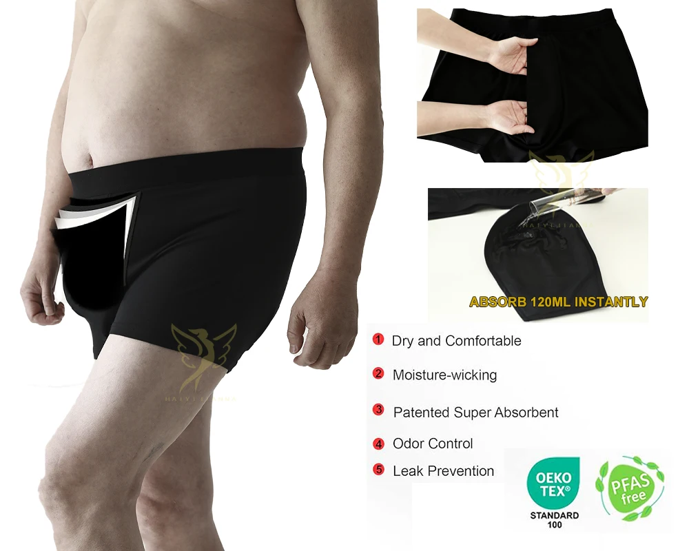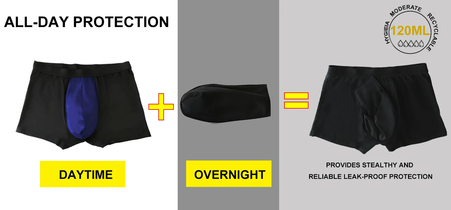 Hygieia Men's Reusable Leakproof Incontinence Pads Boxer Briefs Bladder Control 120ml Protection Incontinence Underwear for Men