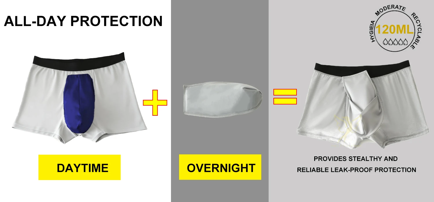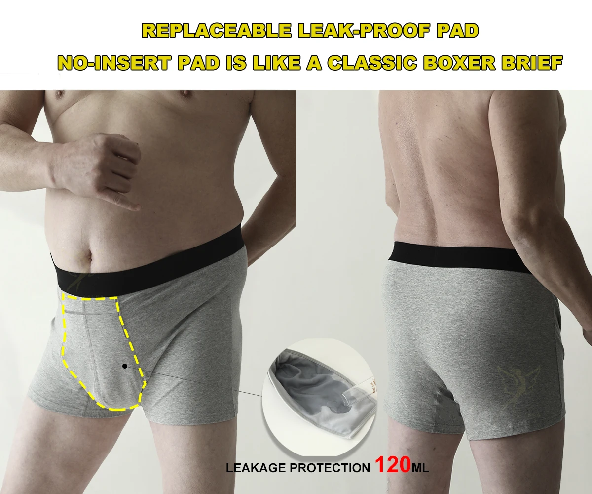 Hygieia Cotton Reusable Washable Leakproof Protective Incontinence Briefs with 120ML Absorb Pad Incontinence Underwear for Men