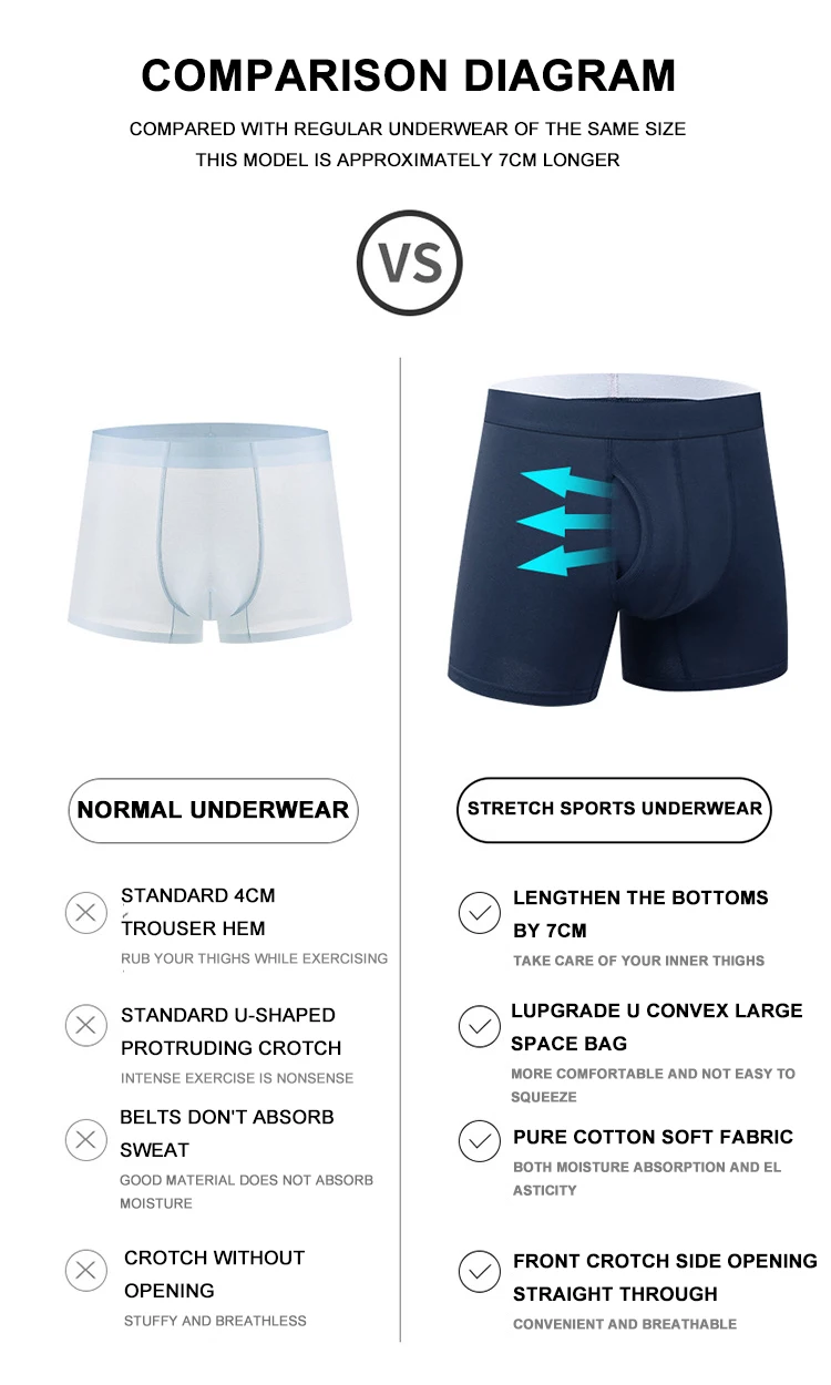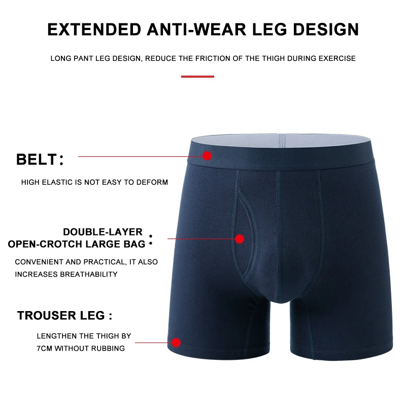 Hygieia Custom High Quality Mens Sweat-absorbing Boxer Brief Elastic Waist Band Cotton Long Leg Men Underwear Boxers Pour Hommes