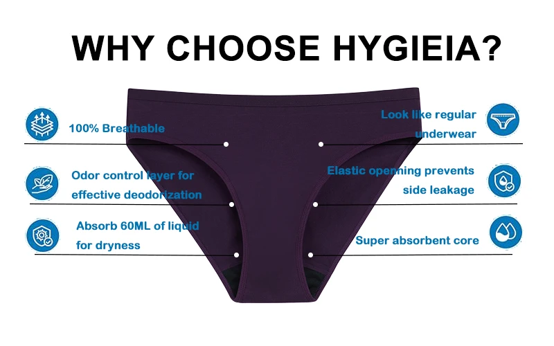 Hygieia Custom Reusable Washable Heavy Flow 60ML Leak-Proof Period Underwear 5-Layer Bragas Menstruales Underwear for Women