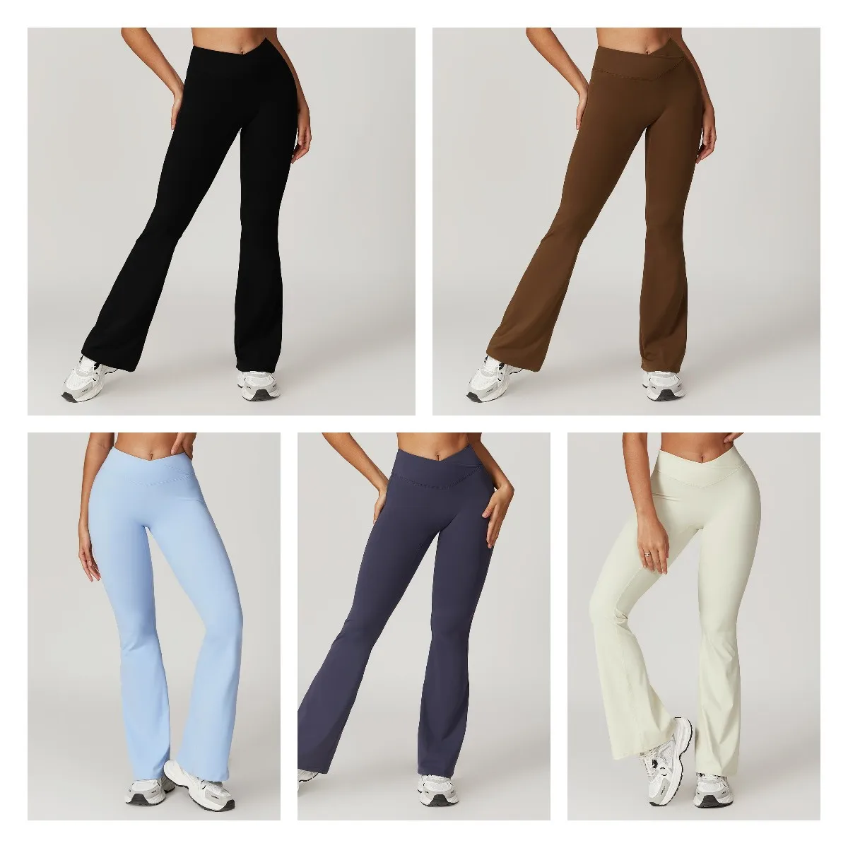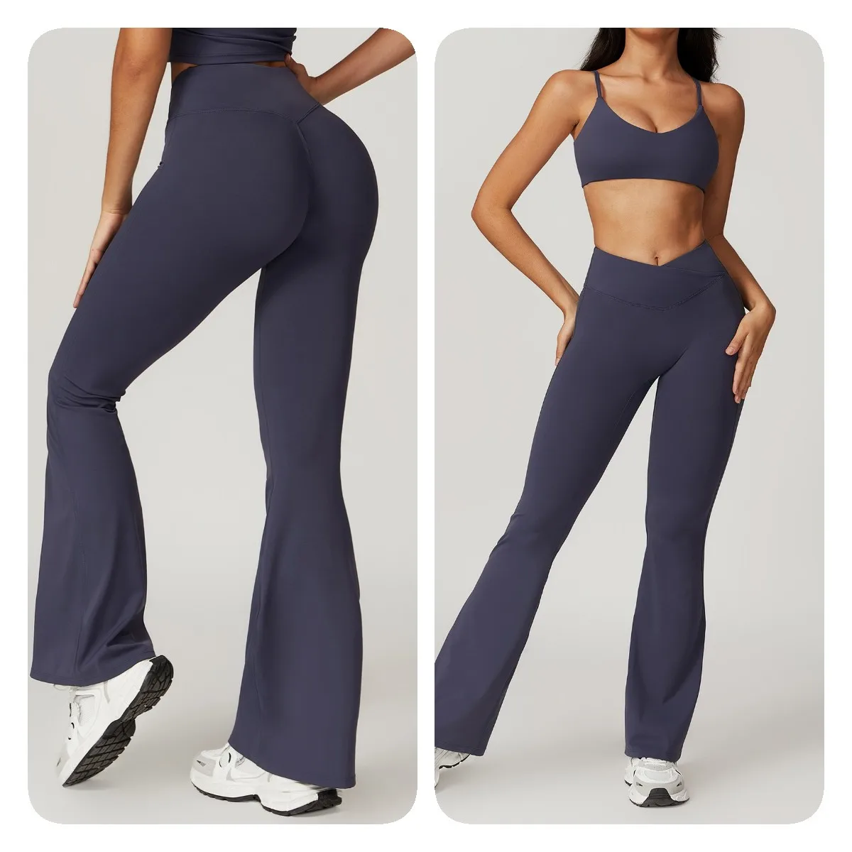 YISHENHON Recyclable Fabric Quick Dry Yoga V Waist Gym Leggings Running Workout Wide Leg Pants Flare Woman Sport Pants