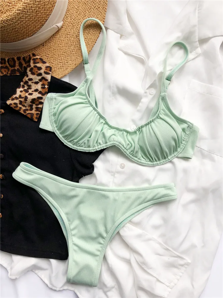 MLY Ruffle Bikini Summer Two Piece Suit Sexy Swimwear Bandage Biquini Triangle Swimsuit Printed Bathsuit