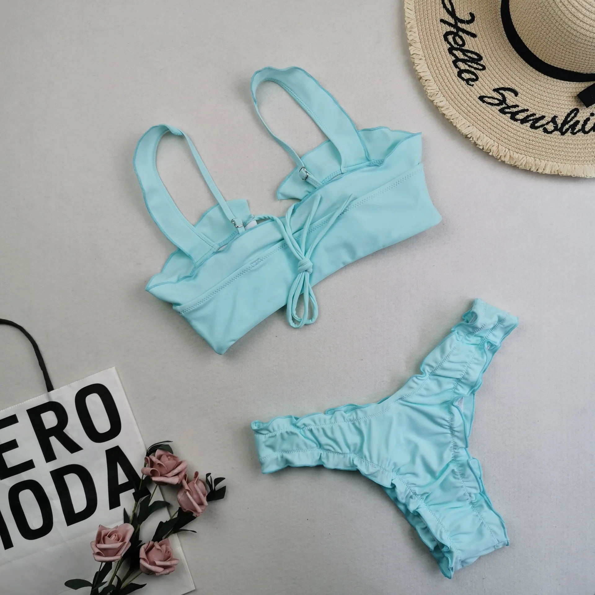 MLY Ruffle Bikini Summer Two Piece Suit Sexy Swimwear Bandage Biquini Triangle Swimsuit Printed Bathsuit