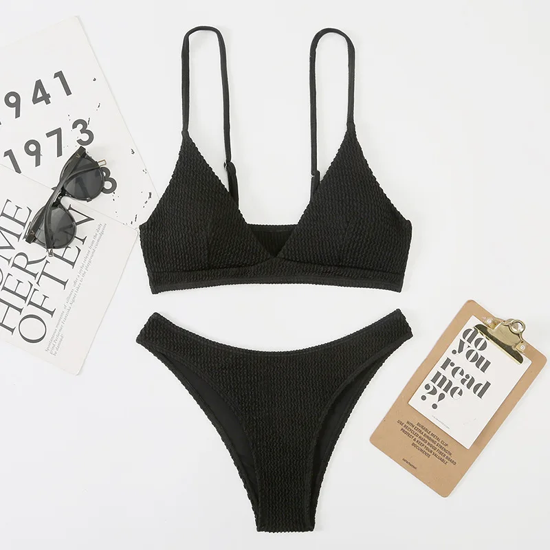 Women Bikini Swimwear Set Personality Sling Two Piece Solid Color Bikini Swimwear Wholesale Bathing Suits