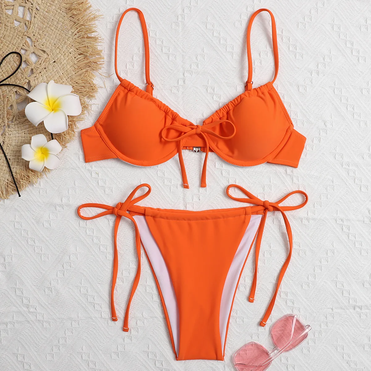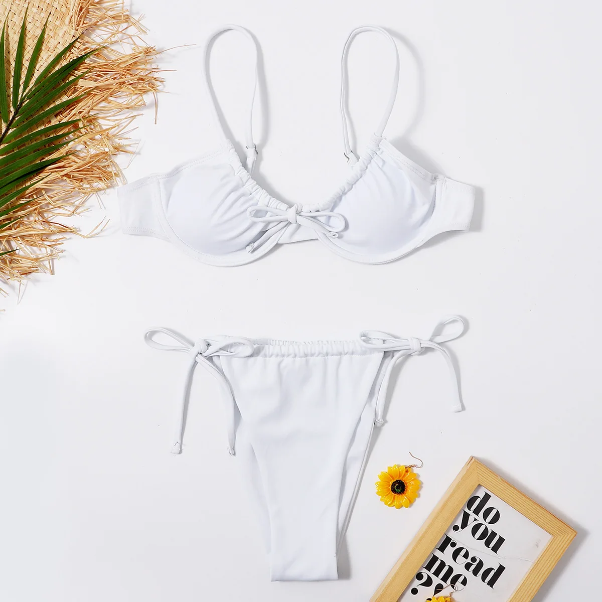 New Women High Waist Solid Color Beach Swimwear Casual Push up Sport Bikini Beachwear Biquini Swimsuit Wholesale Bathing Suits