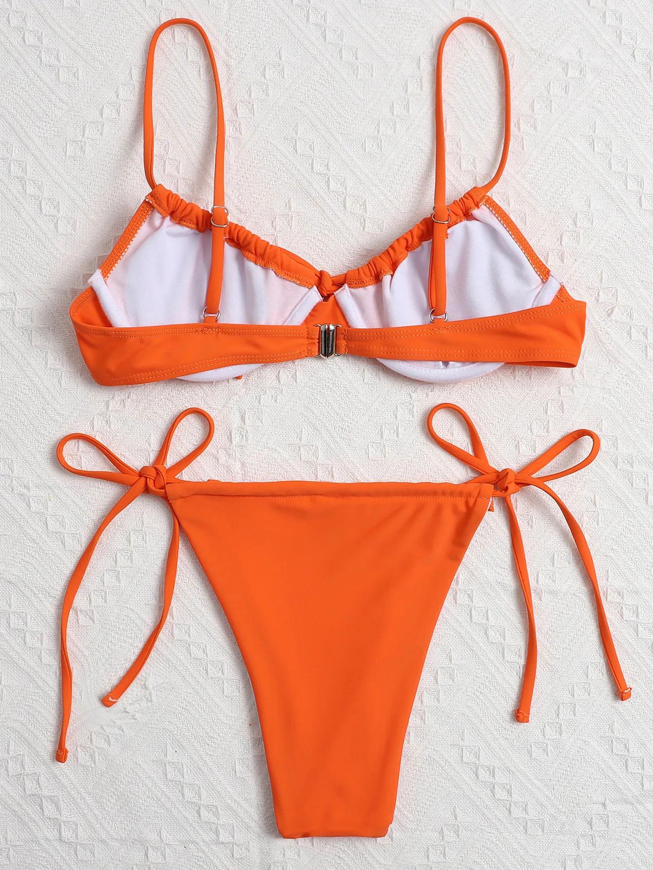 MLY Ruffle Bikini Summer Two Piece Suit Sexy Swimwear Bandage Biquini Triangle Swimsuit Printed Bathsuit