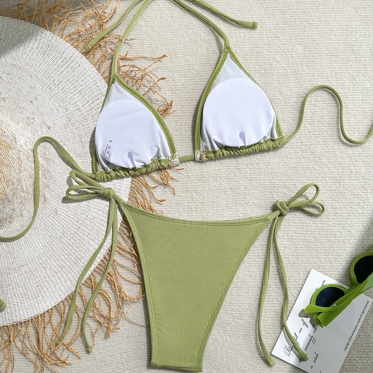 Shell Bikini for Women Sexy Triangle Cup Halter Neck Tie Strap Two Piece Swimsuit with Minimalist Design Spandex/Polyester