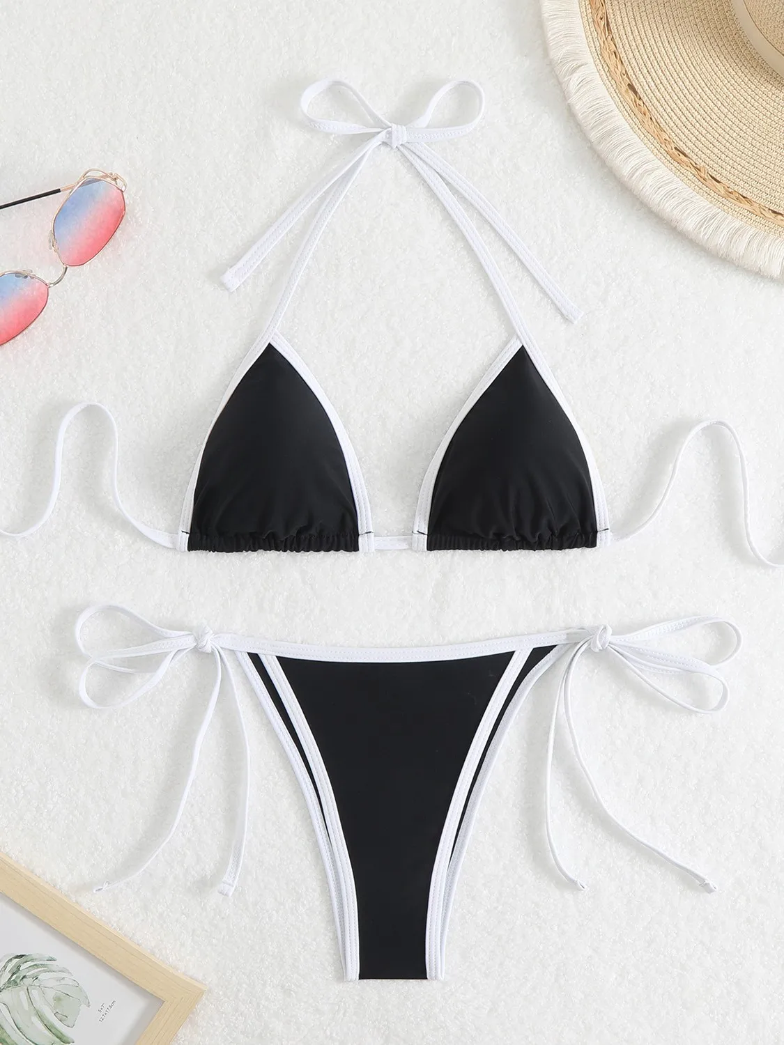MLY Best Selling Solid Black and White Women Ladies Beachwear Custom Swimwear Sexy Micro Bikini Bathing Suits